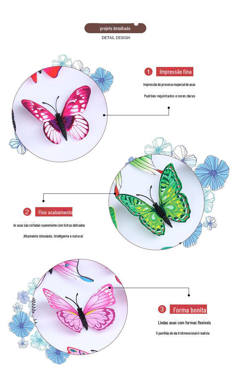 4,5cm Ímã Camada Única Pequena Borboleta Estéreo Decoração Artificial Sala de Estar Quarto Adesivo de Parede Dormitório Layout de Restaurante