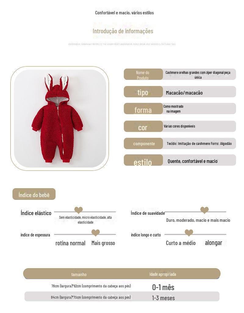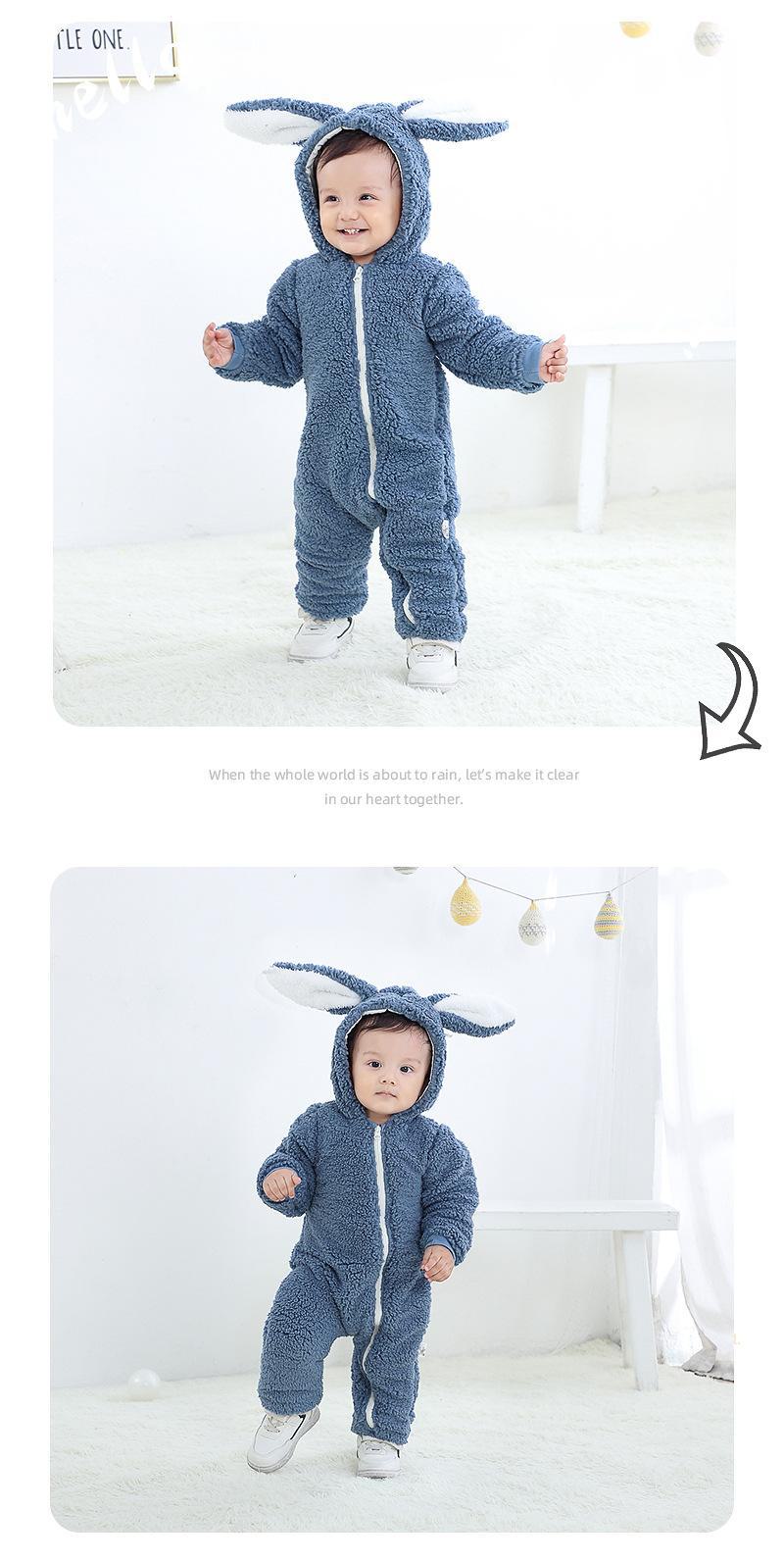 Roupa de peça única para bebê outono e inverno quente imitação lã de cordeiro grosso ha roupas masculinas e femininas orelhas de coelho bebê roupa para sair