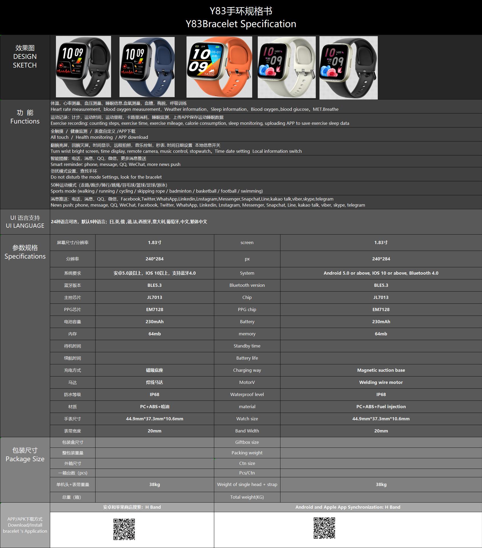Compre Y83 relógio inteligente novo Bluetooth chamada 1.85inch temperatura do corpo frequência cardíaca açúcar no sangue multi-esportes modo relógio no atacado no Joom.pro