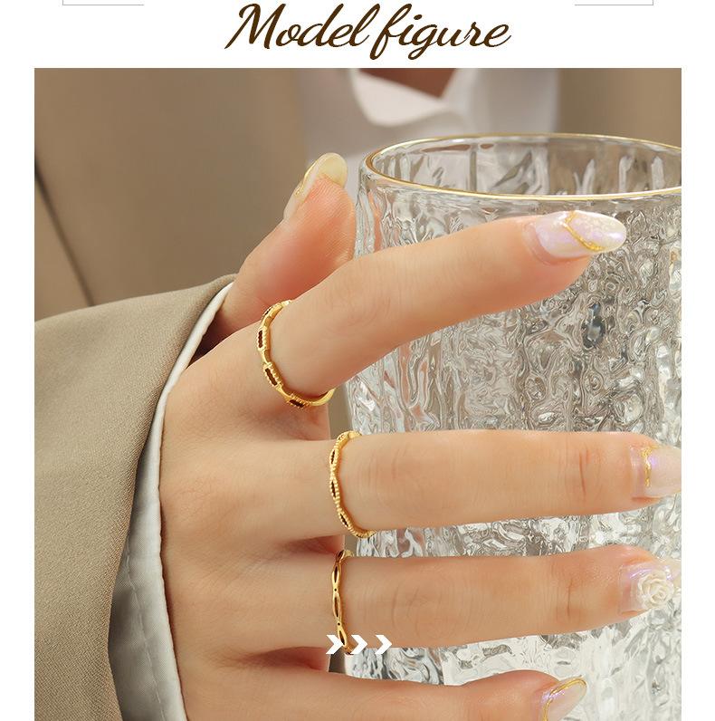 Europeu, Americano, Japonês e Coreano Ins Anel Simples Retrô Vazado Empilhado Anel de Dedo Indicador Anel Versátil Aço Titânio Sem Cor