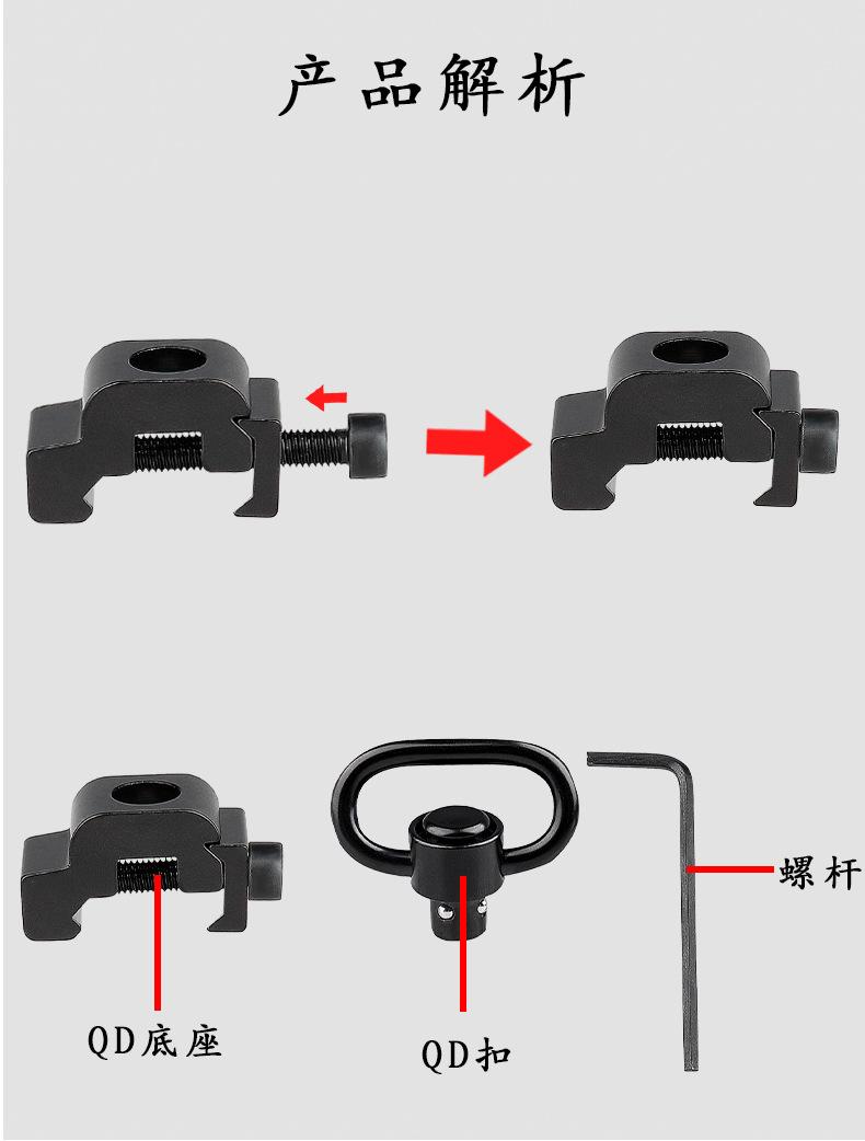 Fivela de cinta de metal de liberação rápida QD com base 20mm Fivela de anel de cinta borboleta QD fivela de liberação rápida Fivela de cinta tática