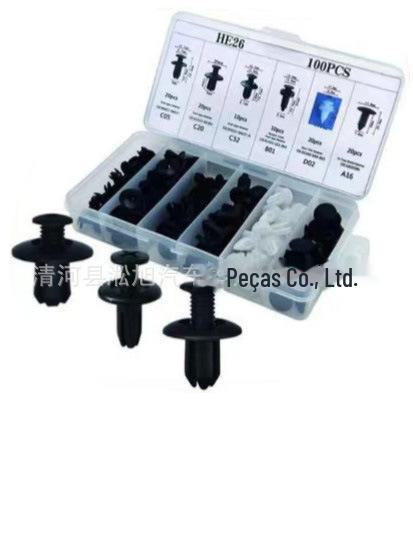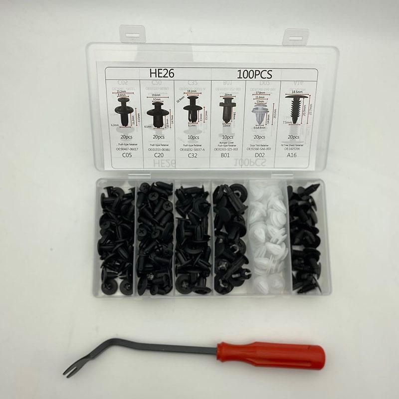 Seis Clipes de Carroceria Universal Jogo Combinado de 100 Peças, Fivelas Populares em Caixa para Exportação, He26