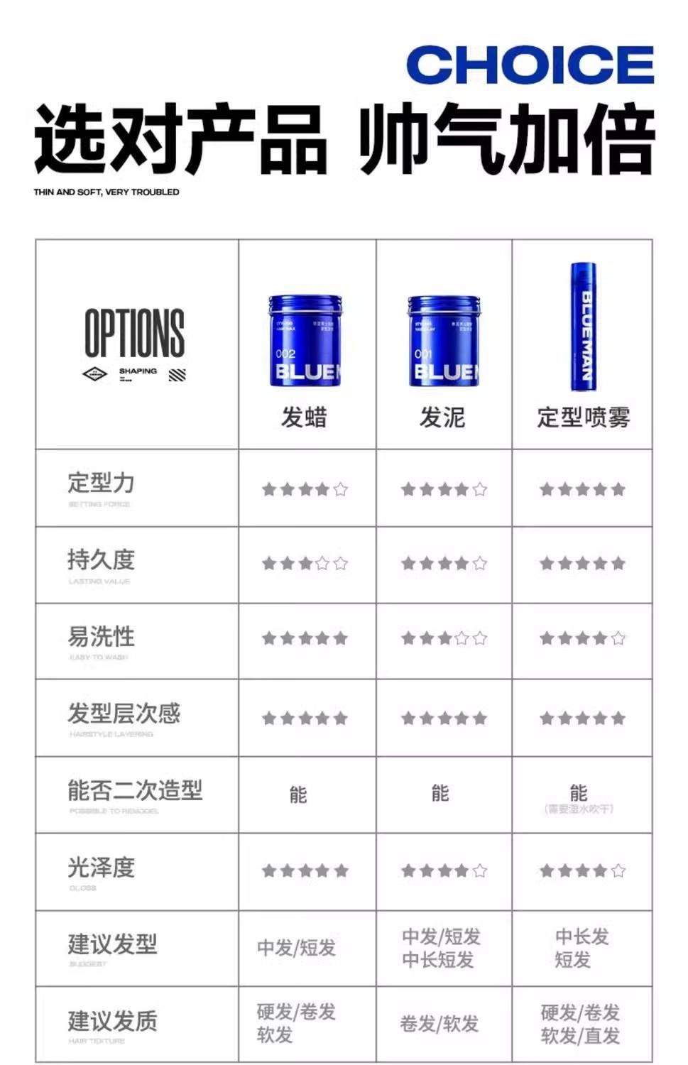 Setting spray 320ml, Holding spray 99ml, Styling clay 90g, Styling hair wax 90g