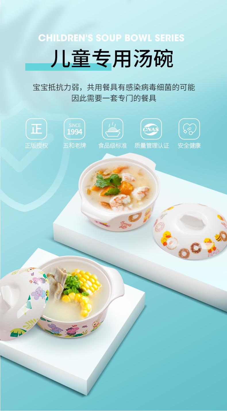 Cinco e melamina louças crianças com tampa tigela bebê complementar tigela resistente a quedas casa desenho animado bonito comer tigela atacado