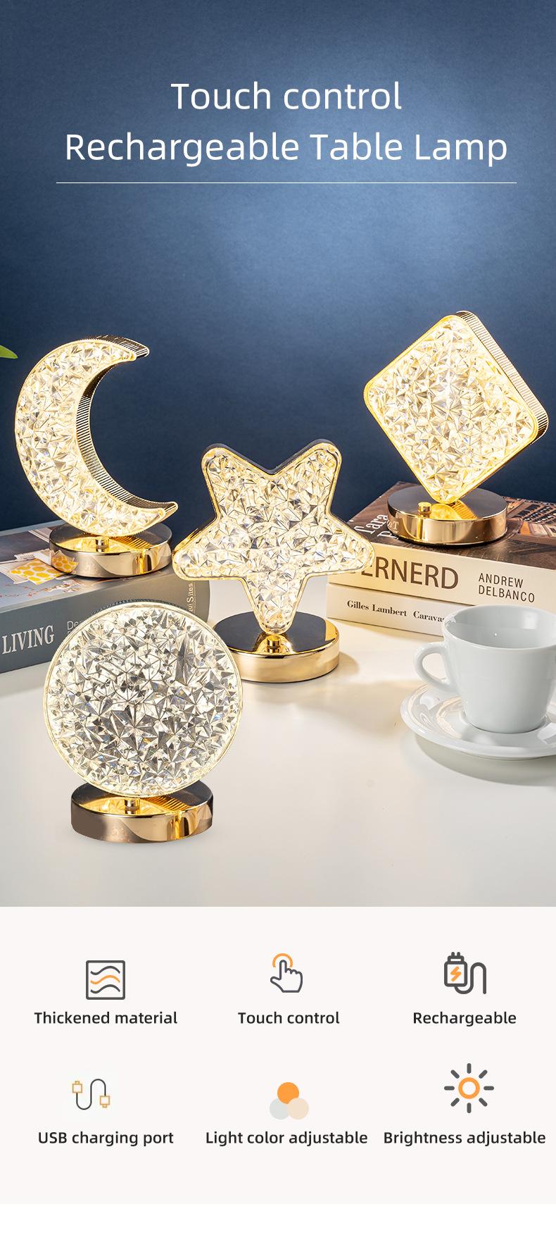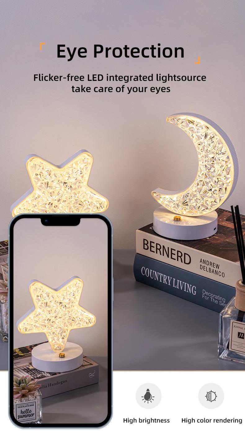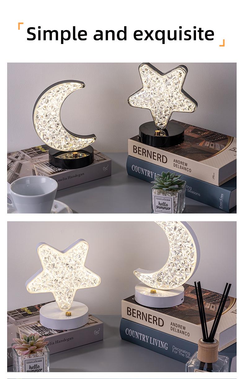 Lâmpada de mesa led estrelas lua carregamento toque quarto cabeceira presente pequena lâmpada de mesa cross-border moderno simples decoração