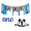 Coroa de Festa de Primeiro Aniversário do Bebê Banner Chapéu para Menino de 1 Ano Topper de Bolo Banner Decoração de Aniversário Estilização