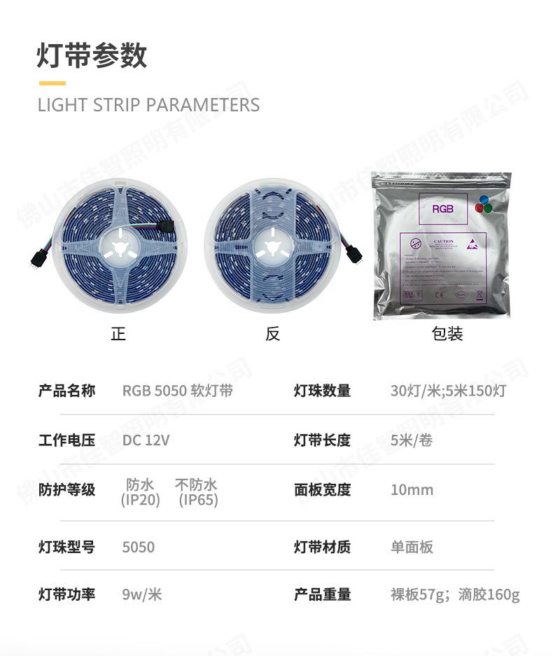 [Tira de luz LED] 5050RGB Tira de luz colorida decorativa 12VLED tira de luz em estoque atacado