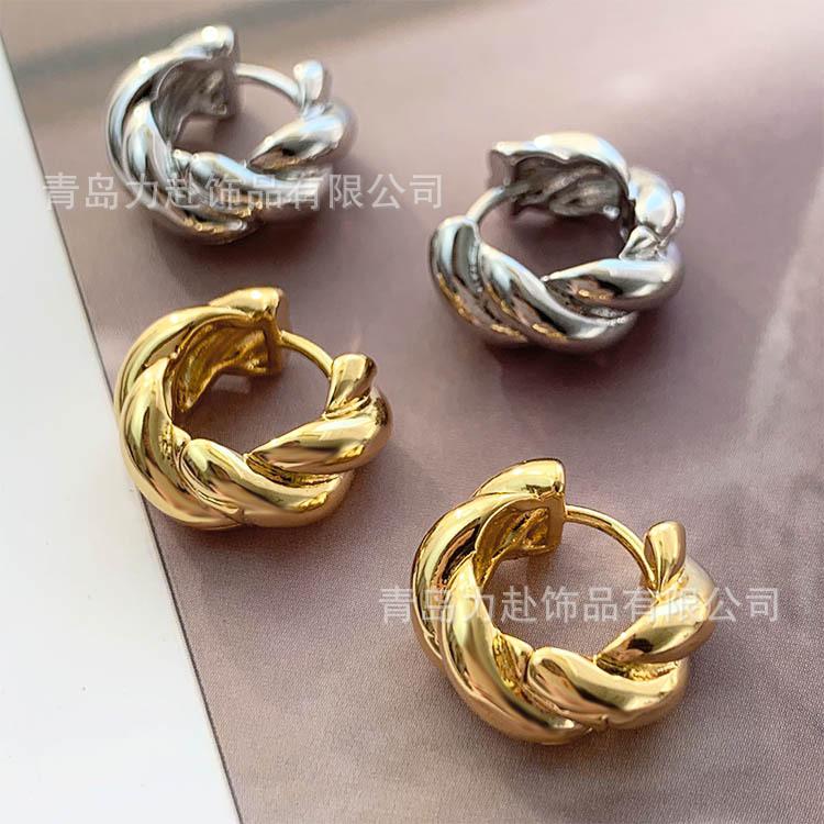 Compre Brincos Europeus e Americanos Estilo Ins de Alta Qualidade Versátil Moda Retrô Francês Torcido Banhado a Ouro Cobre Item Quente Estilo Ins no atacado no Joom.pro