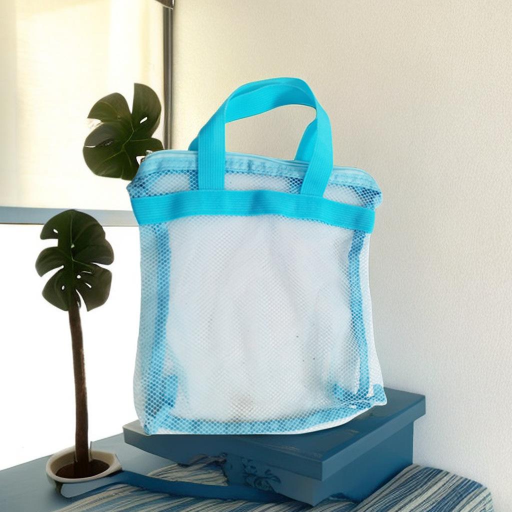 Uso: Basta colocar os brinquedos ou conchas na bolsa de armazenamento.