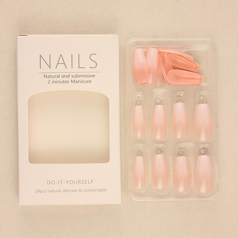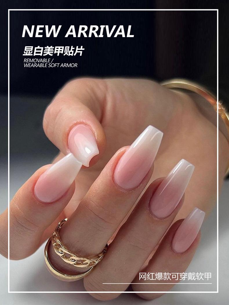 Usando um atacado de adesivos de unhas de luxo gradiente branco leitoso longo 24 peças de unhas sem costura finalizadas remendo de unha falsa