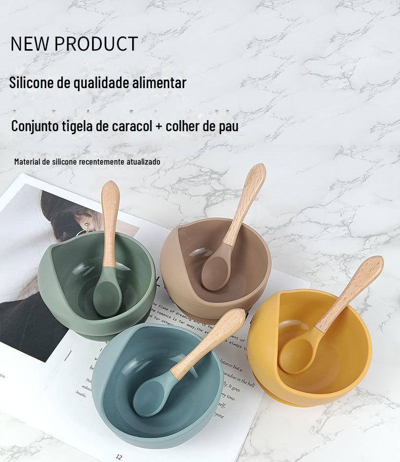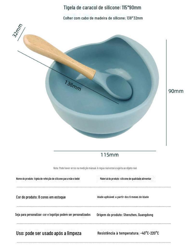 Tigela de silicone com ventosa, tigela de caracol, tigela de arroz infantil, tigela suplementar para bebês, conjunto de colher para treinamento de alimentação de bebês