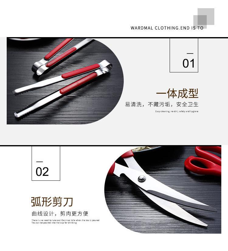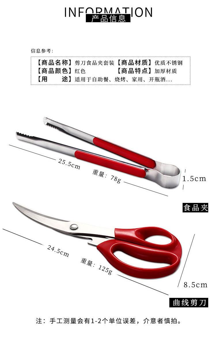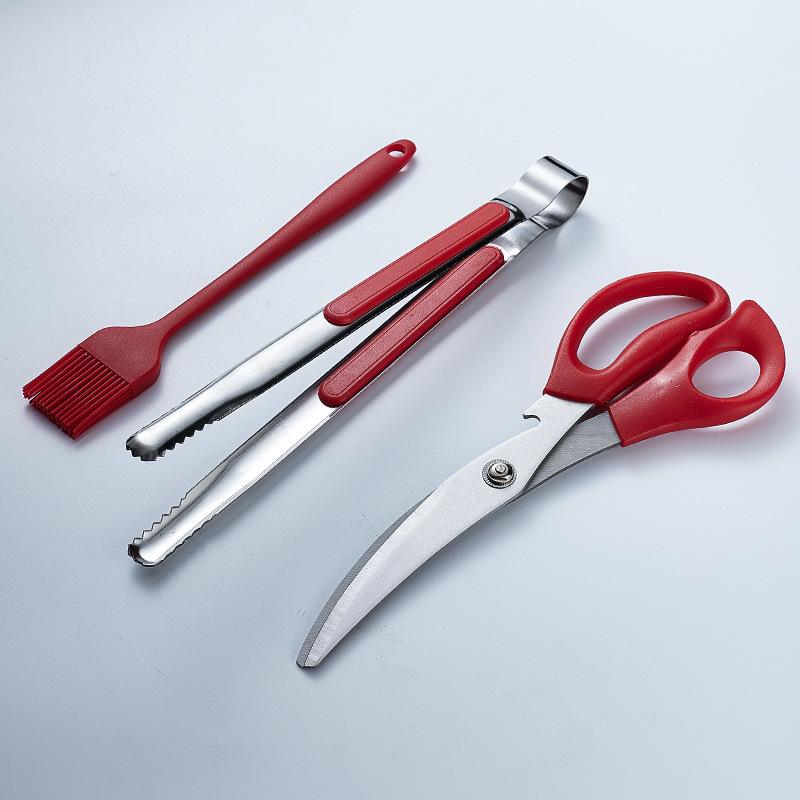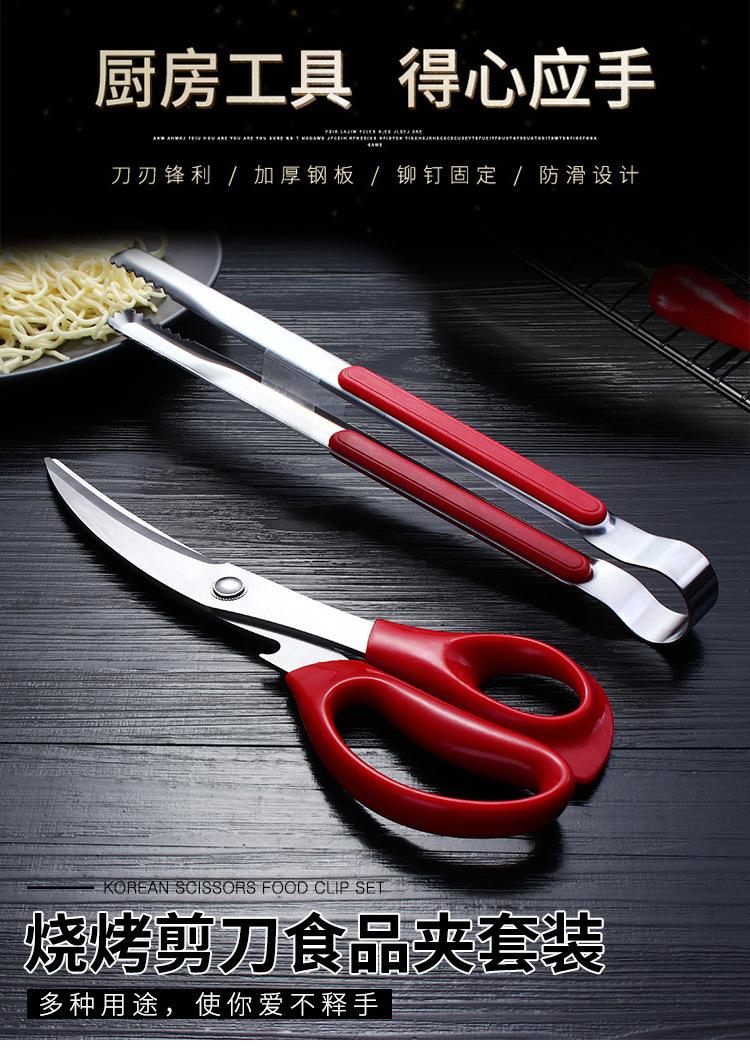 Tesoura de cozinha multifuncional de aço inoxidável, tesoura para picar frango, ferramenta para churrasco, clipe para churrasco, escova de óleo