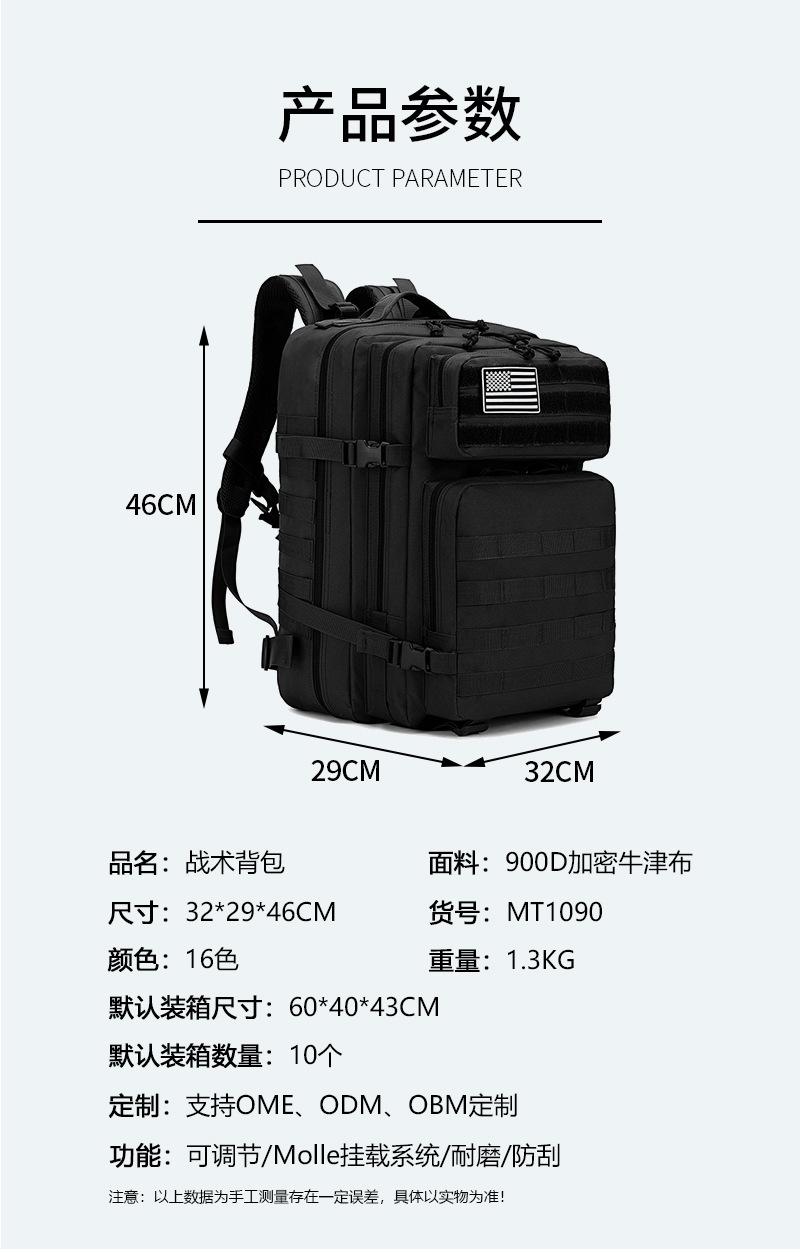 Mochila tática mt1090, processamento personalizado, comércio exterior, venda quente, grande capacidade, 3p, bolsa esportiva, oem, montanhismo, caminhada