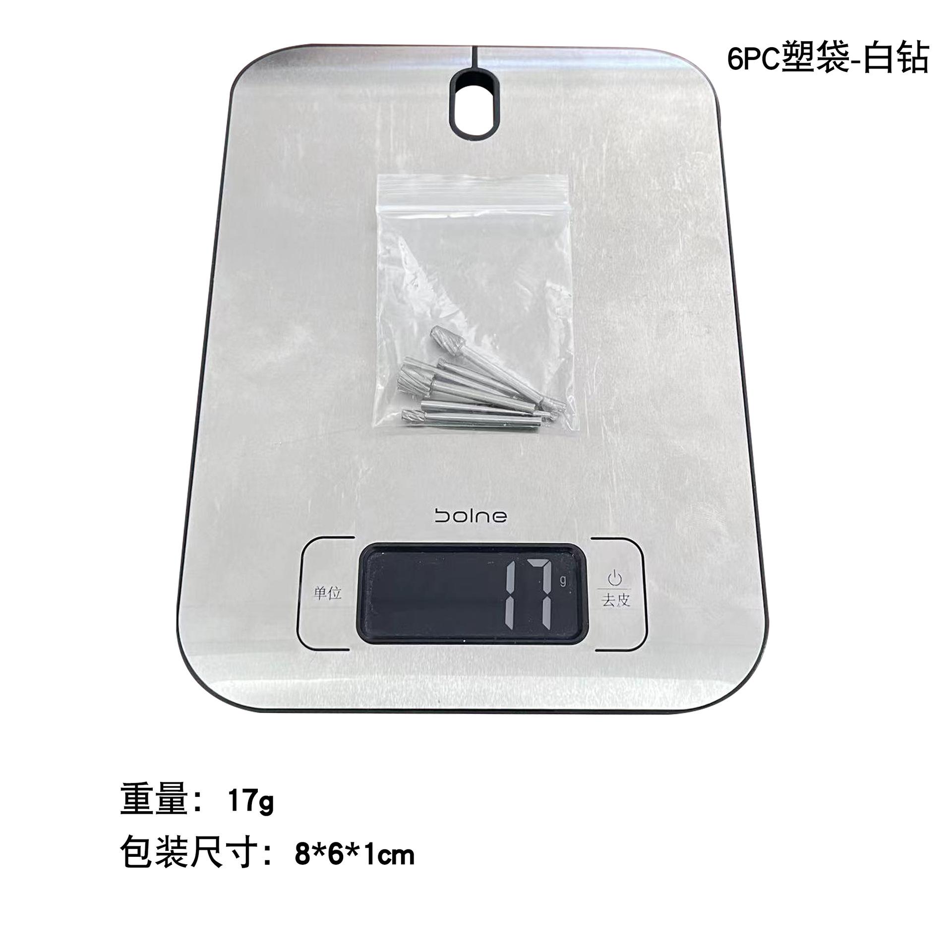 6pc fine needle rotary file (White Diamond)-plastic bag
