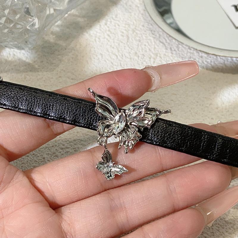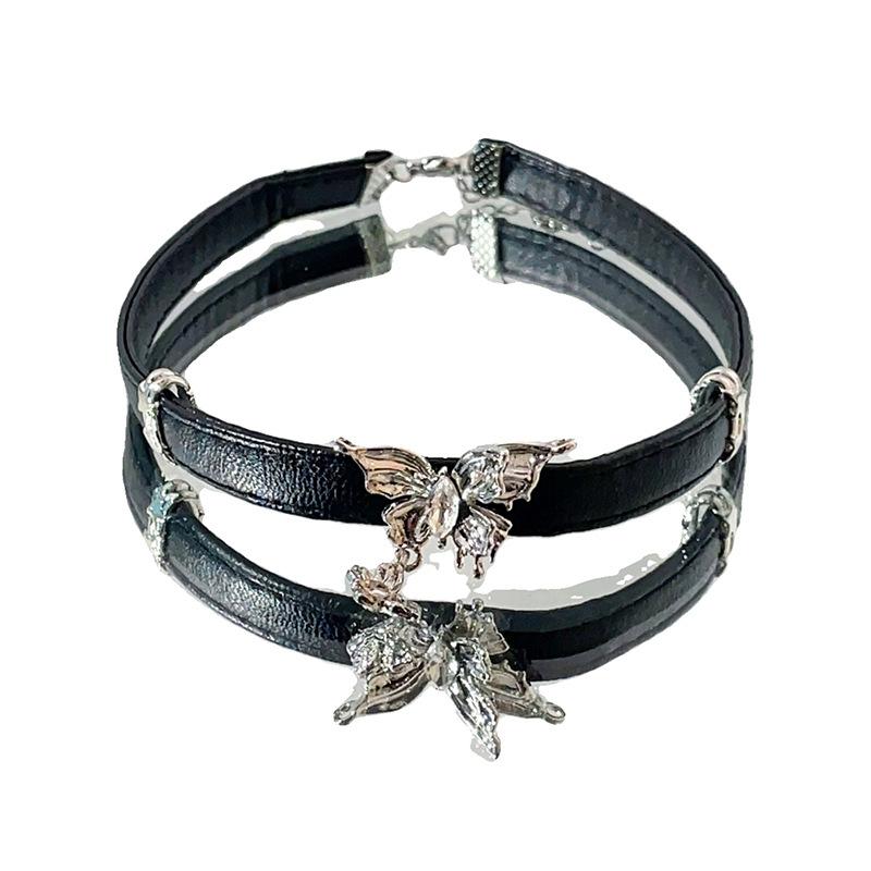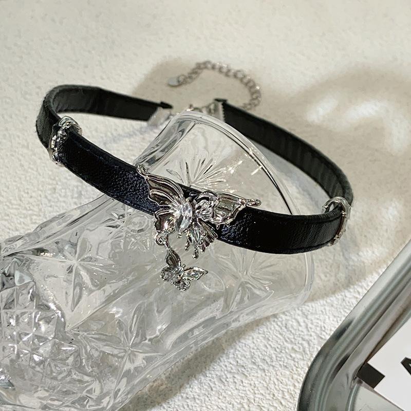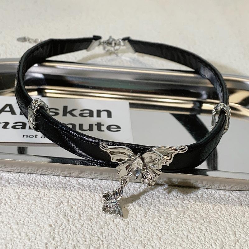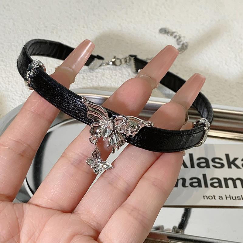 Colar de couro preto estilo escuro borboleta feminina nicho design colar moda alta qualidade clavícula corrente acessórios novo