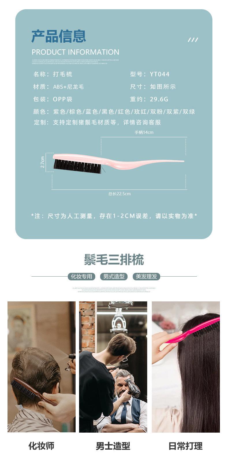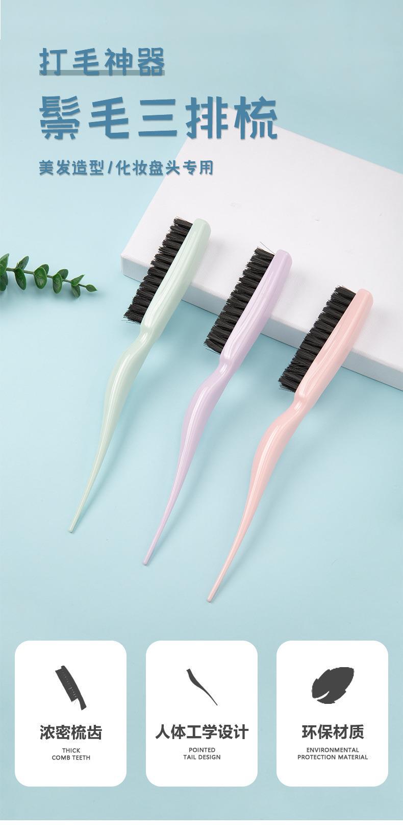 Pente de cabelo com cauda pontiaguda, estilo voador, cerdas de porco, três placas, cabelo fofo, cabelo cacheado, subpacote, pente de cabelo, pente de linha, maquiagem de beleza platinada