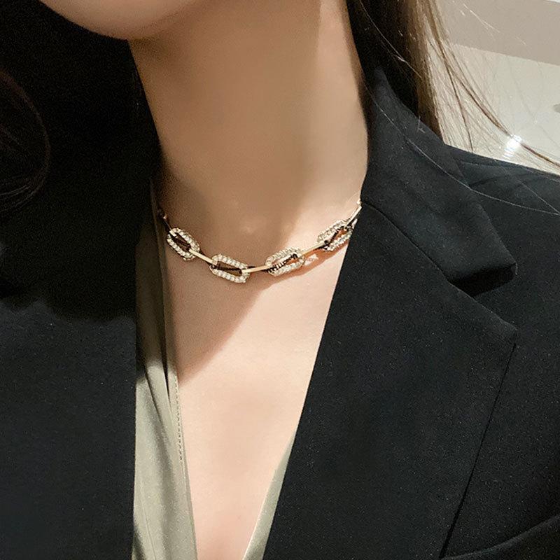 Vintage Chain Colar Mulheres ins simples Cold Style Colar Chain Hip-Hop Europeu e Americano Internet Celebridade All-Match Late Fog Clavicle Chain