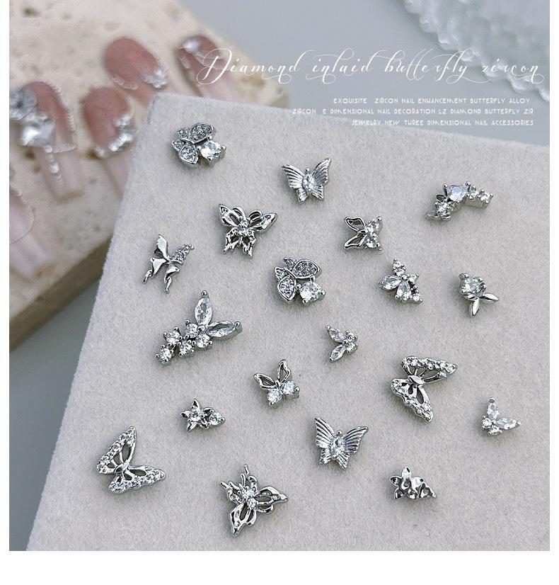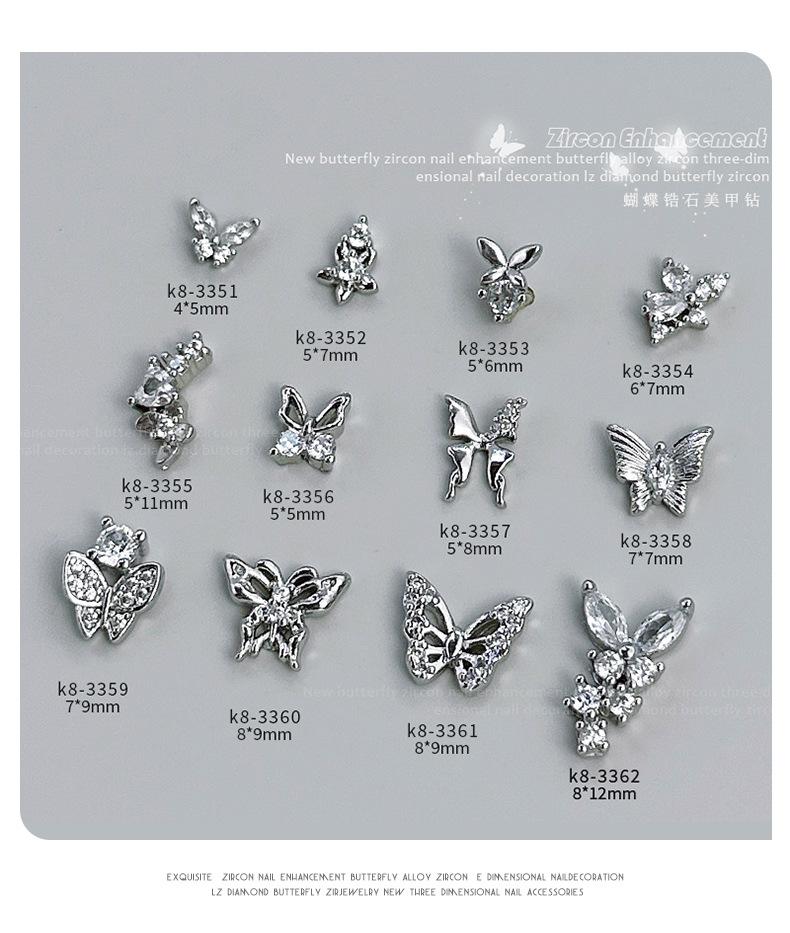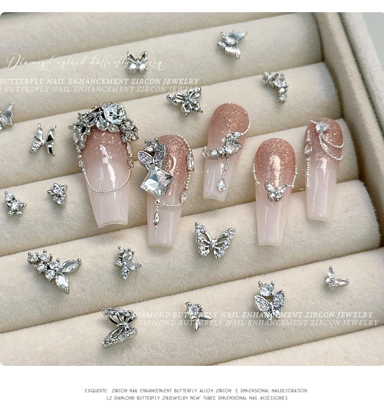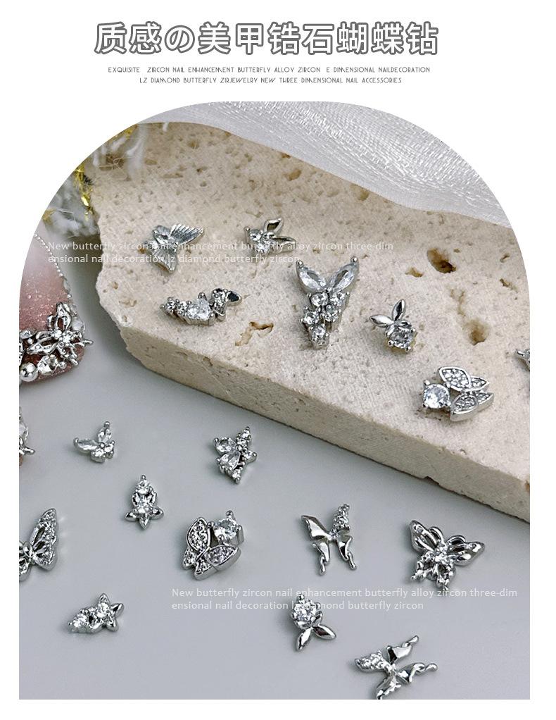 Compre Mini Borboleta Zircônia Acessórios Nail Art Novo Luxo Leve Retrô Prata Pequeno Diamante Decoração de Unhas Diamante Popular Celebridade da Internet no atacado no Joom.pro