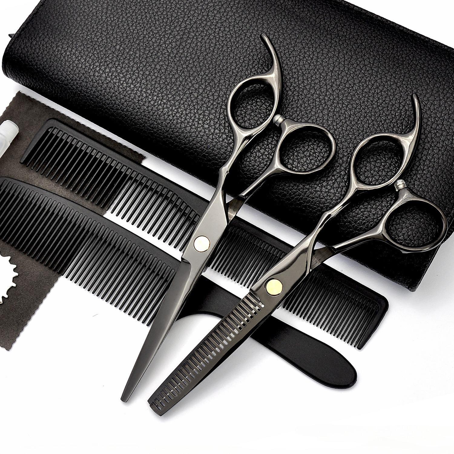 Tesouras de barbeiro, tesouras profissionais de desbaste com dentes de platina, tesouras planas, conjunto de ferramentas de cabeleireiro voador, tesouras de corte de cabelo, tesouras de cabeleireiro pretas