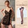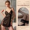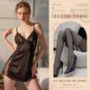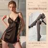Black (lace-trimmed slip dress + thong + pantyhose)