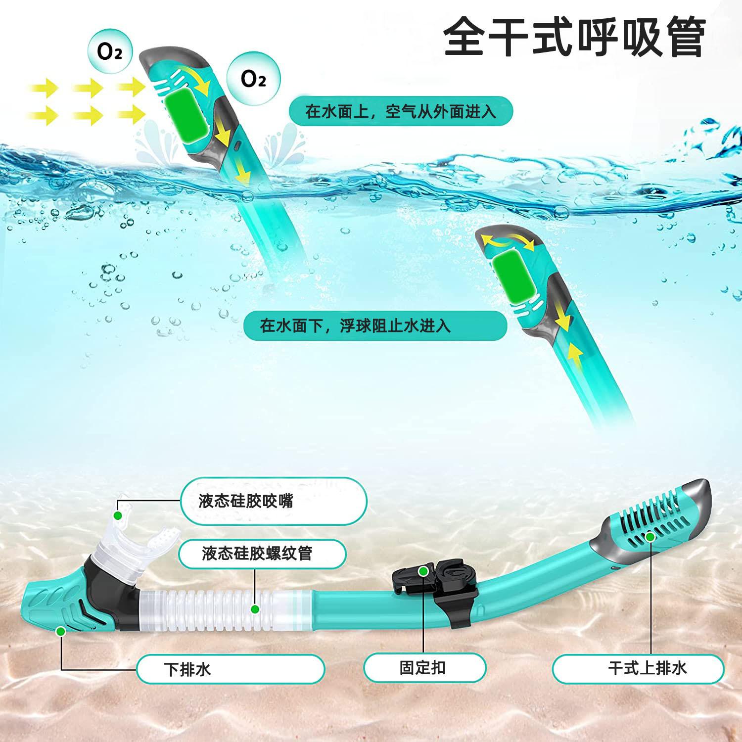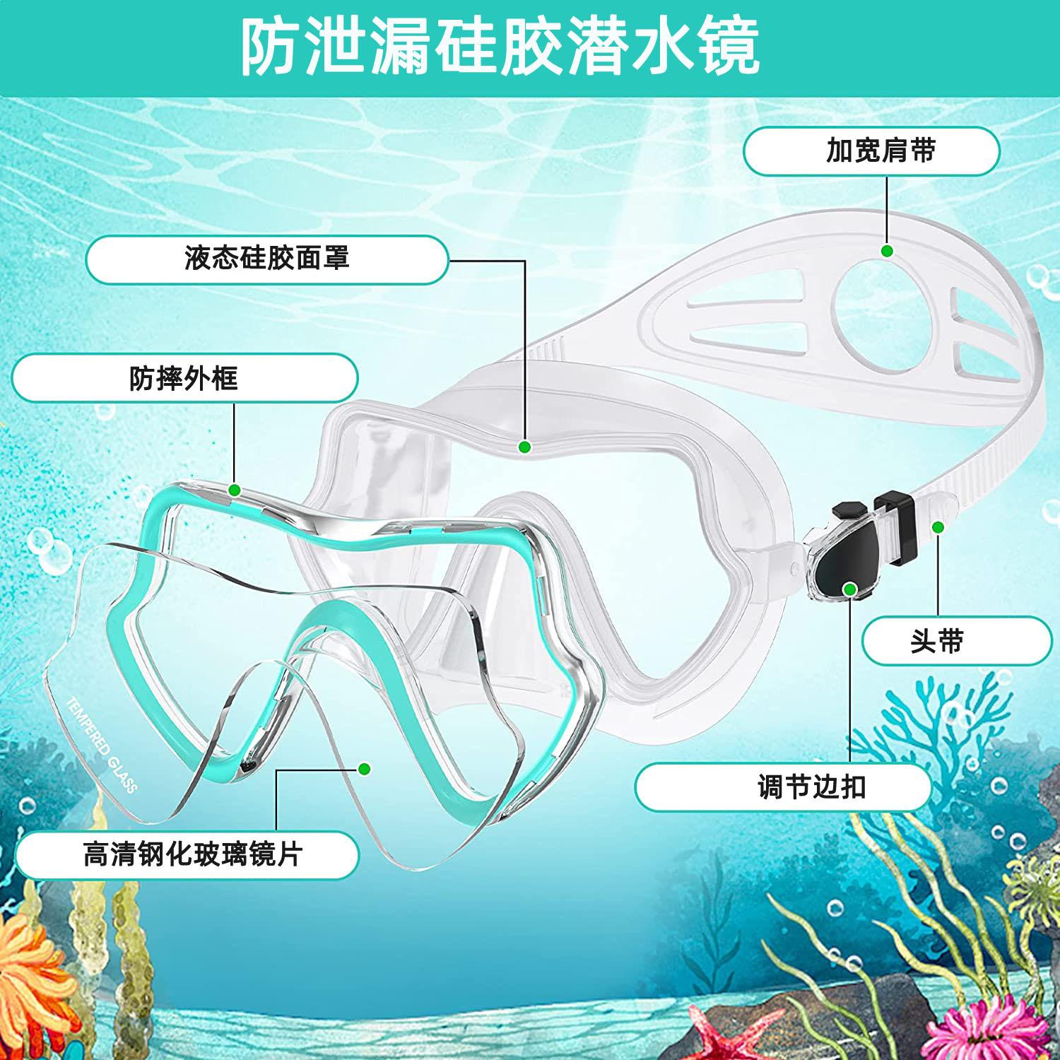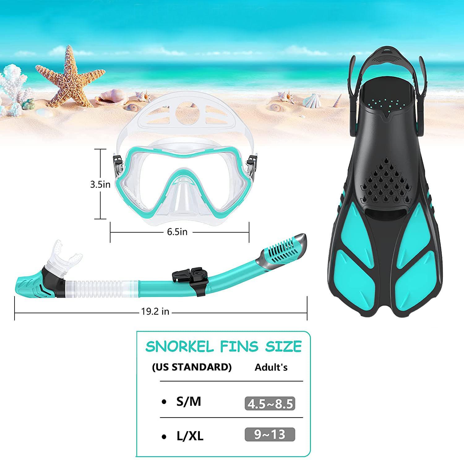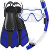 Traje de snorkeling adulto óculos de mergulho de vidro temperado nadadeiras máscara de snorkeling tubo de respiração seco completo snorkeling conjunto de três peças