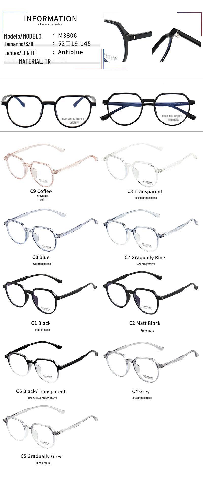 M3806 Literatura e Arte Pequeno Fresco Estilo Universitário Estudantes Masculinos e Femininos Casal Anti-Luz Azul Polígono Simples Street Beat Óculos