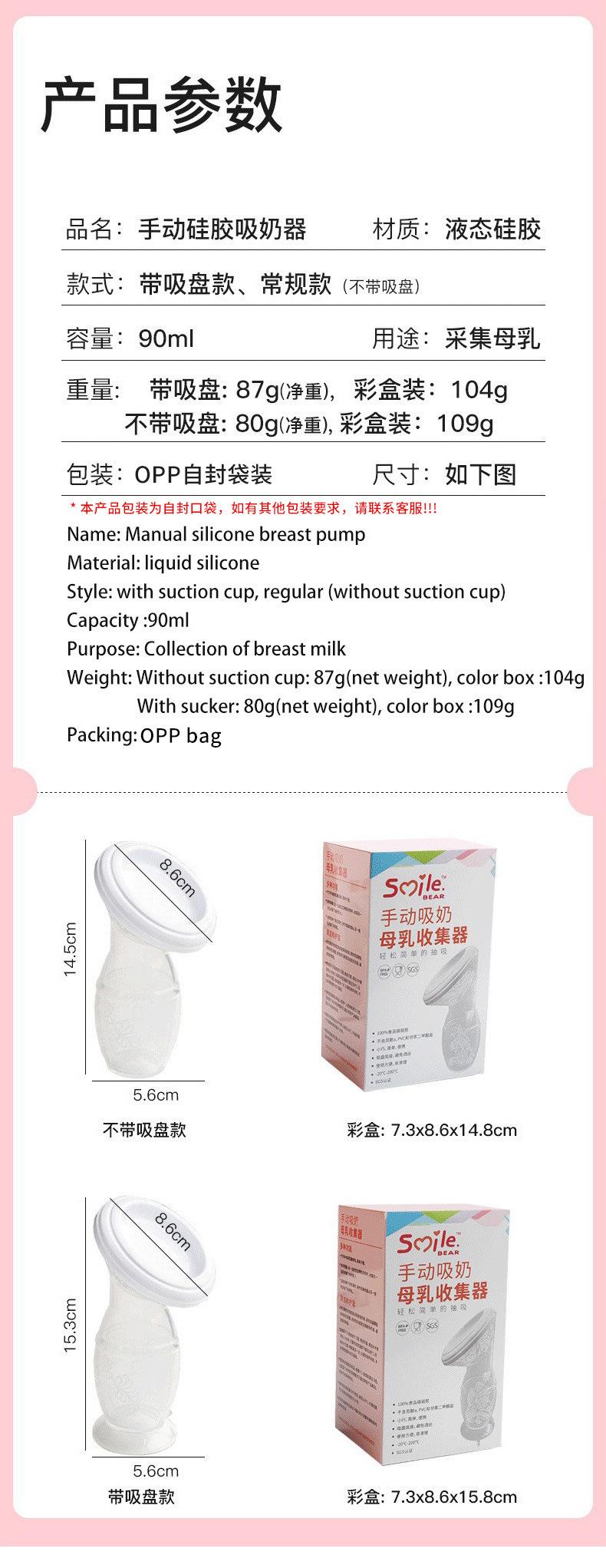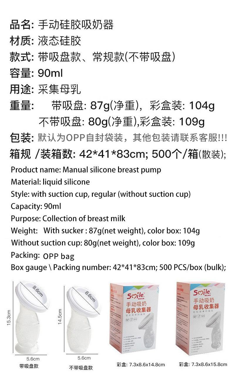Bomba tira leite totalmente em silicone 90ml coletor de leite materno de grande capacidade mãos-livres caixa colorida coletor de leite de sucção grande (1688.com)