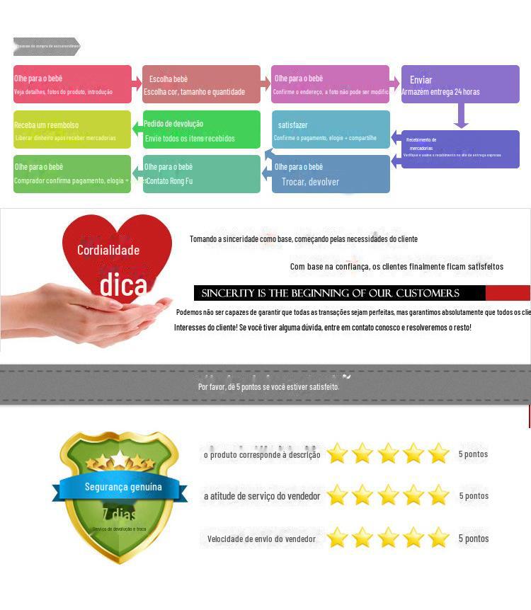 ●Sobre produtos:Embora nossa empresa possua inspetores de qualidade para realizar inspeções rigorosas nos produtos antes, durante e após a produção para garantir que a qualidade do produto seja 100% sem problemas antes do envio. No entanto, devido a vários fatores incertos, os compradores devem inspecionar as mercadorias antes de assiná-las. Se as mercadorias estiverem danificadas, o comprador se recusará a aceitá-las! Devolva-o pessoalmente à empresa de courier!