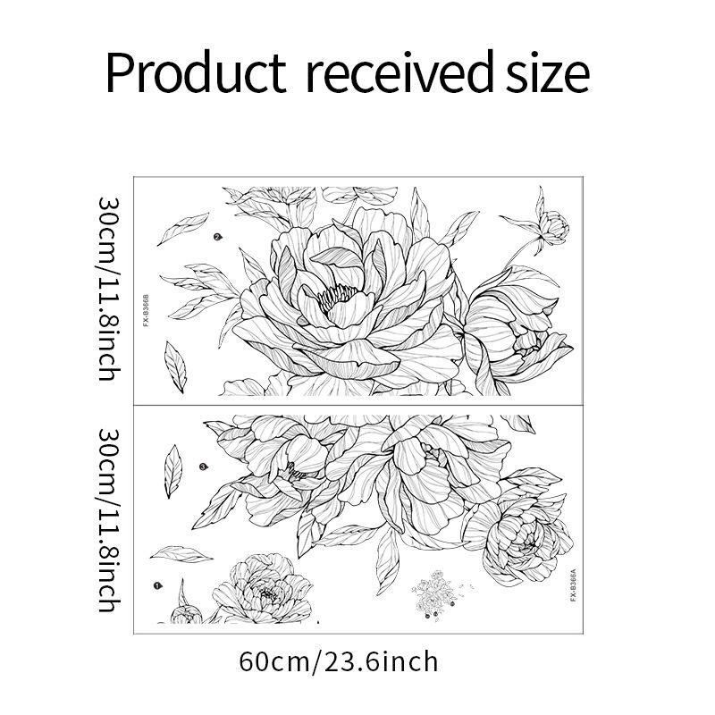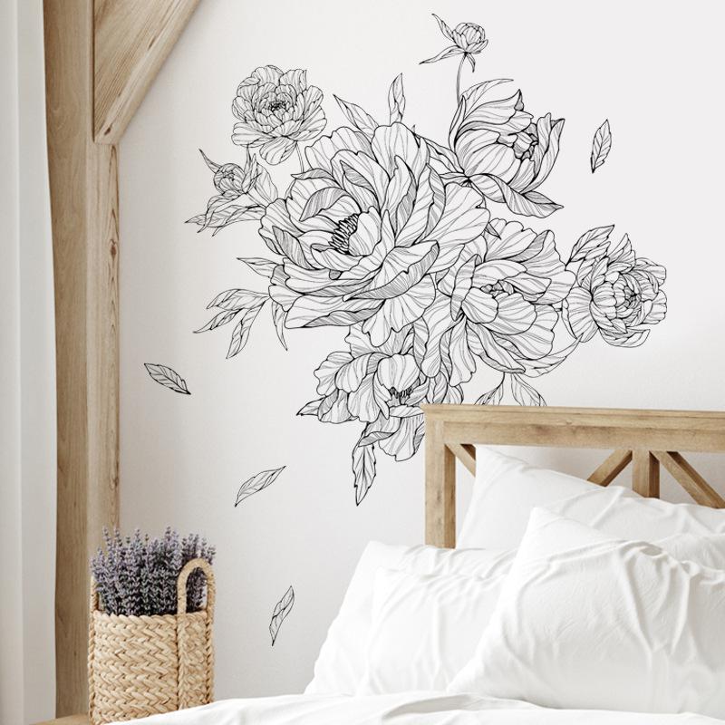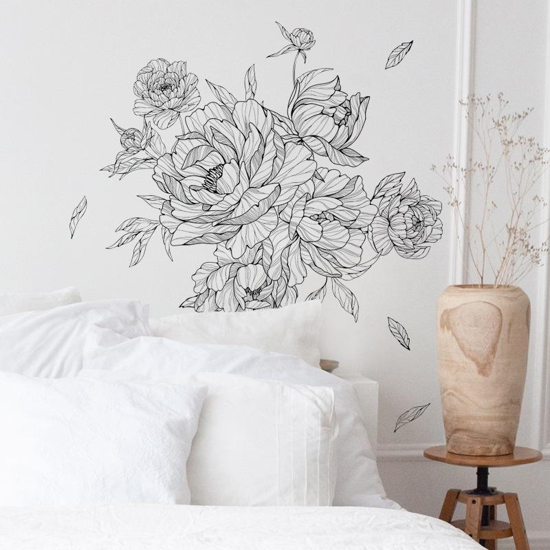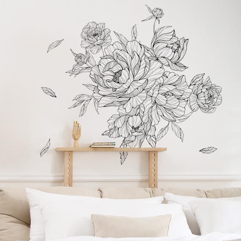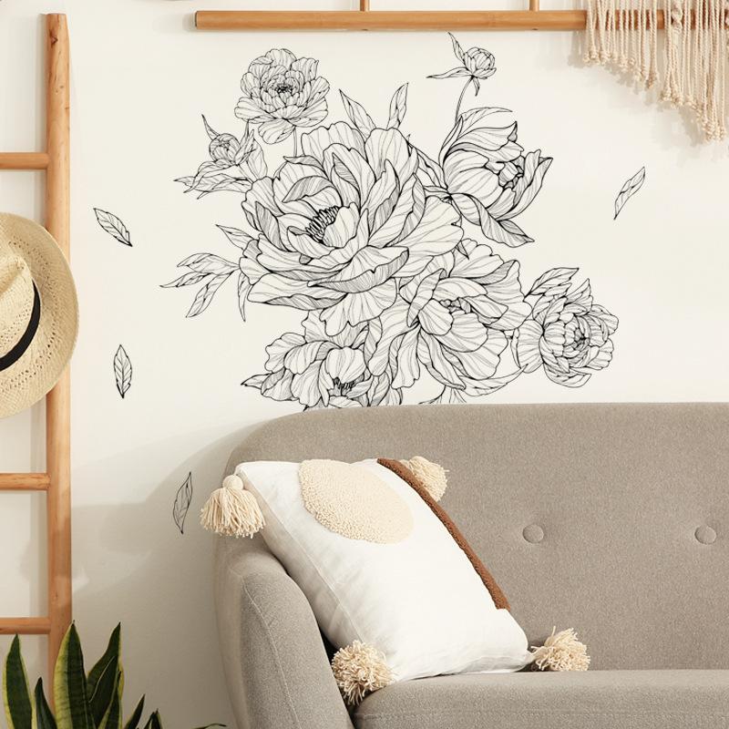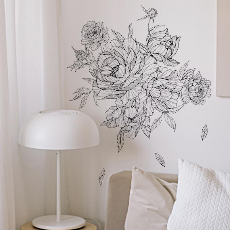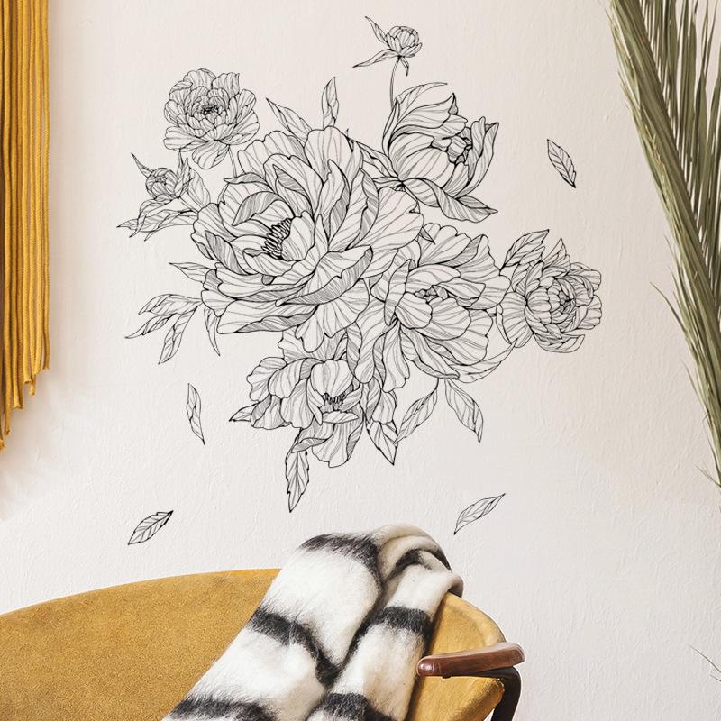 Compre FX-B366 Sketch Peony Flor Sala de Estar Fundo Decoração de Parede Entrada Quarto Layout Renovação Adesivo de Parede Auto Adesivo no atacado no Joom.pro