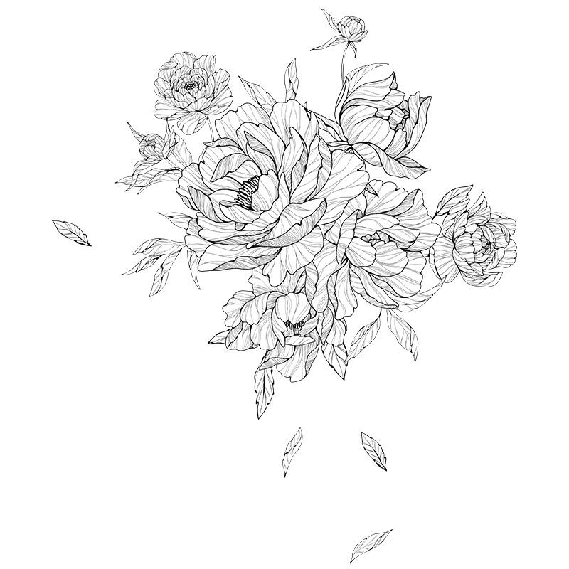 FX-B366 Sketch Peony Flor Sala de Estar Fundo Decoração de Parede Entrada Quarto Layout Renovação Adesivo de Parede Auto Adesivo
