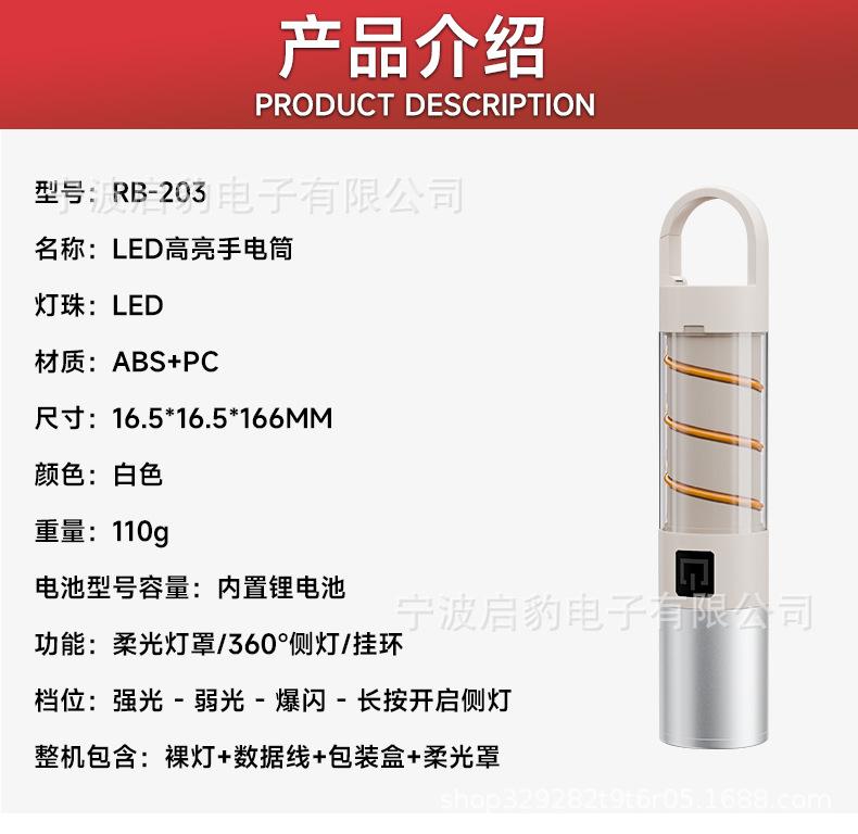 QB-203 hook +360 ° side light flashlight (bare light + data cable + built-in lithium battery + softcover + packaging)