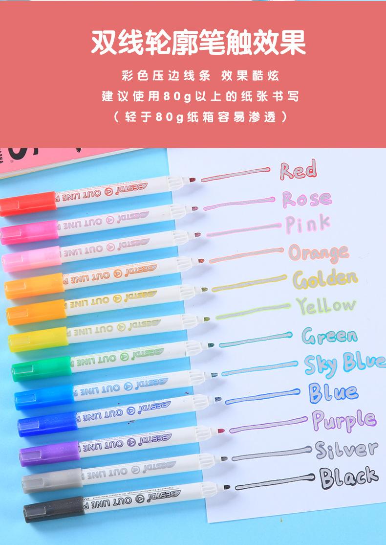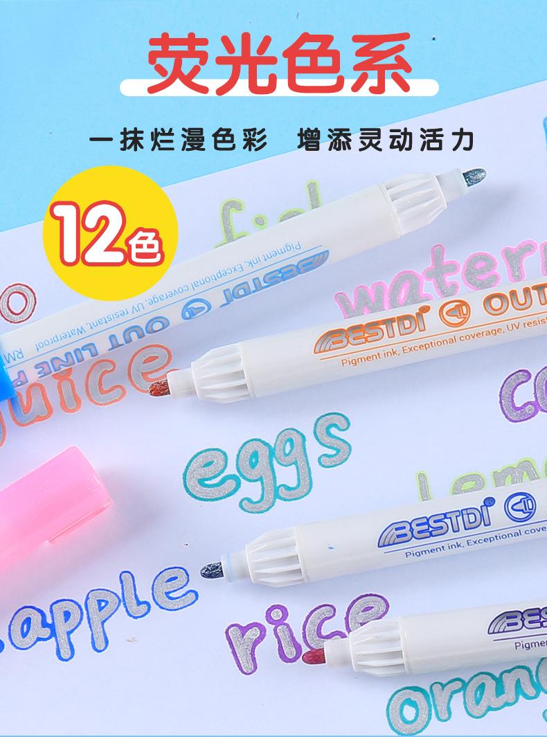 Compre Conjunto de Canetas Contorno Linha Dupla Prata Metalizado Fantasia Flash Marcador Caneta DIY Caderno Grande Capacidade Atacado no atacado no Joom.pro