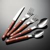 En 420 Aço Inoxidável Comida Ocidental Rebite Grampo Faca e Garfo Colher Cabo de Jacarandá Italiano 5 Peças Principais Presente Refeição