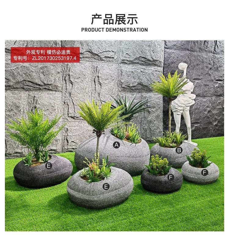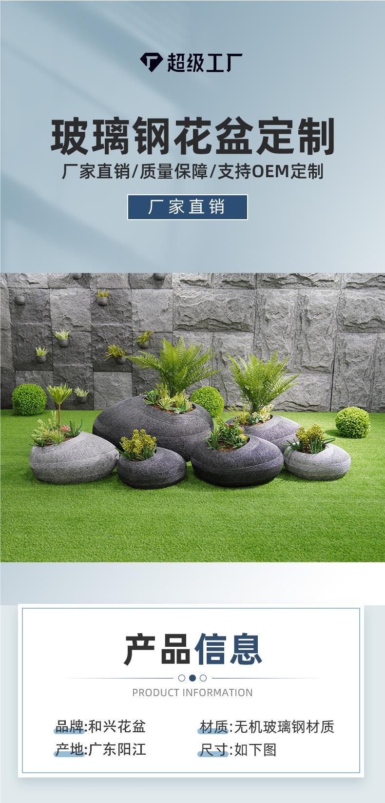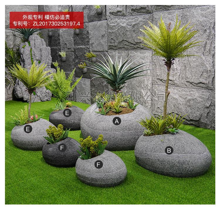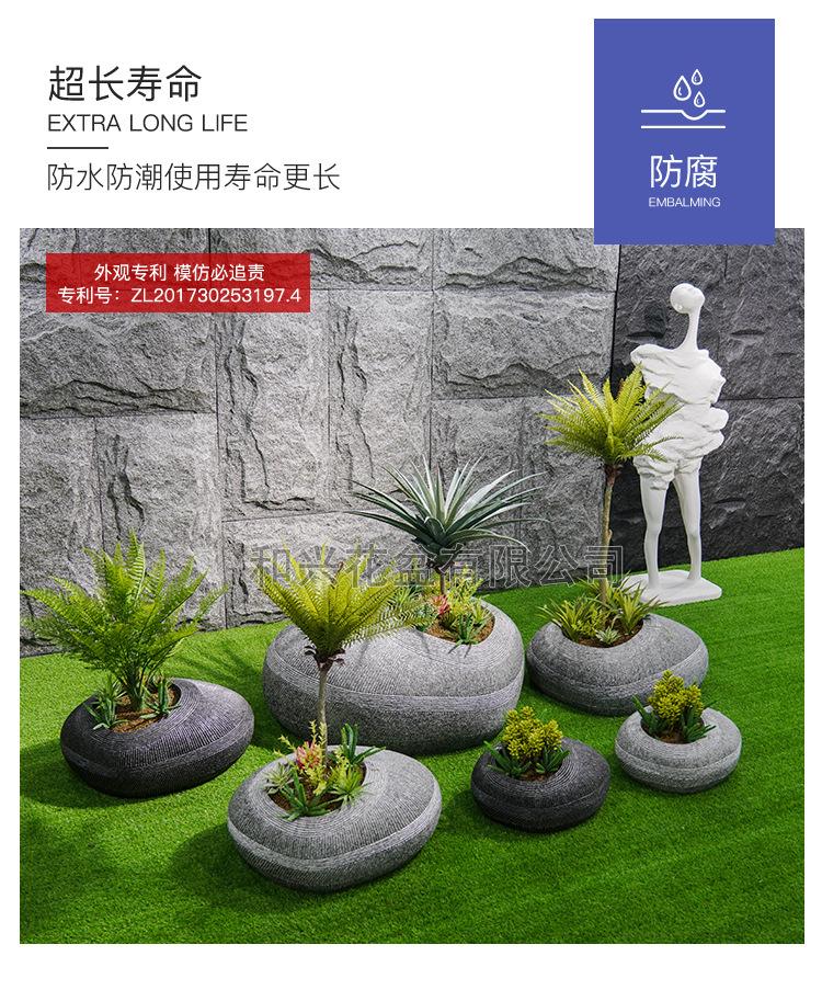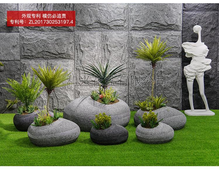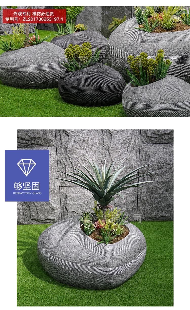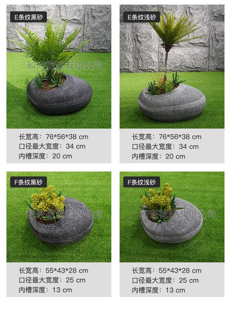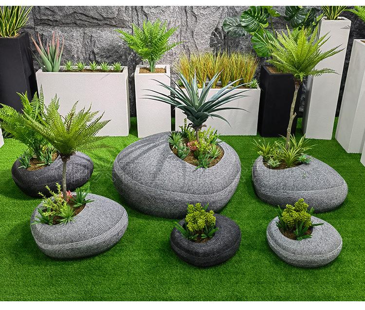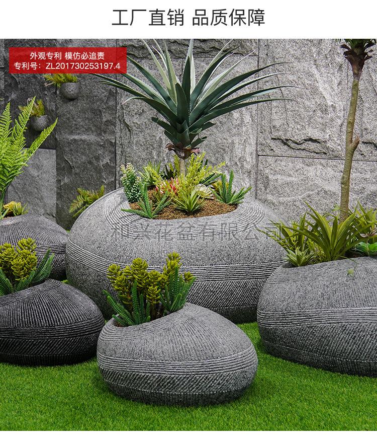 Fabricante de vaso de seixo listrado para áreas externas, paisagismo interno, planta verde em vaso, grande vaso de flores de fibra de vidro de cimento, ornamentos