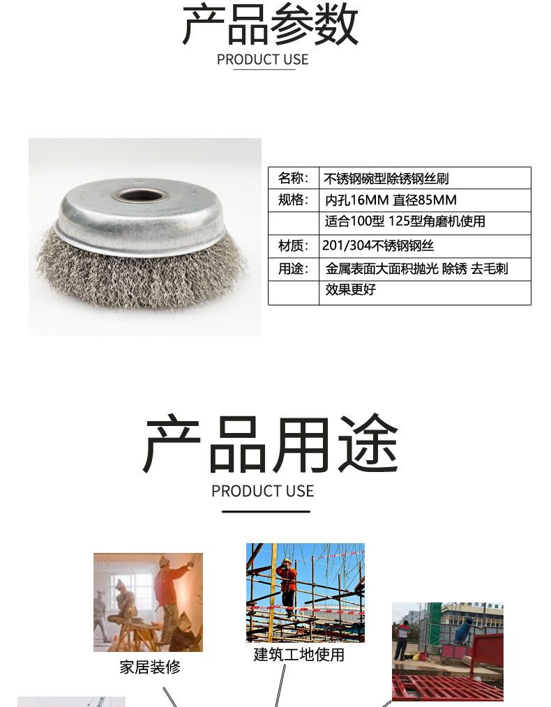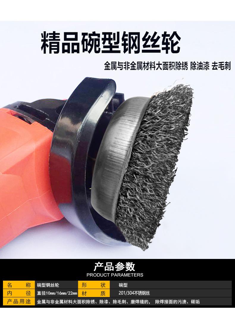 Roda de arame tipo tigela de aço inoxidável 304 125*16 furos arame de aço inoxidável 201 escova ferramenta para esmerilhadeira angular tipo 100 16 furos