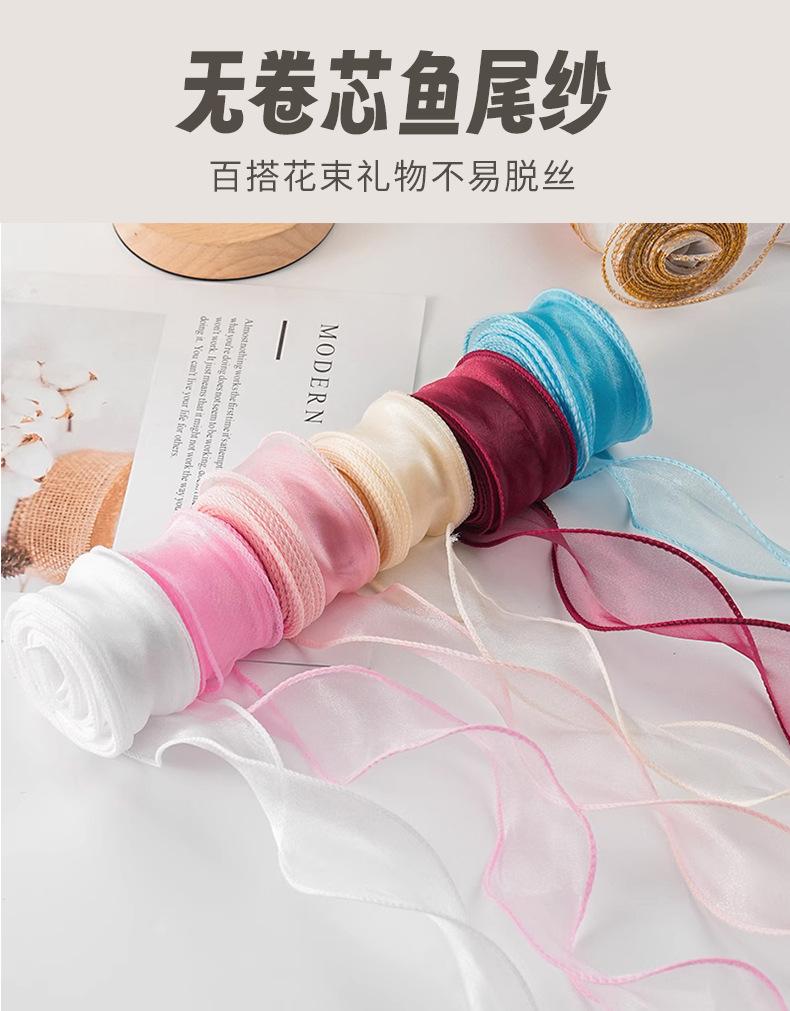 Personalizado fio de rabo de peixe buquê de fita embalagem fita de cetim diy material onda enrolado borda fita laço decoração flor