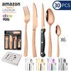Amazon aço inoxidável cubo de água utensílios de mesa faca, garfo e colher 30 peças conjunto comida ocidental caixa de presente faca de bife, garfo e colher para 6 pessoas
