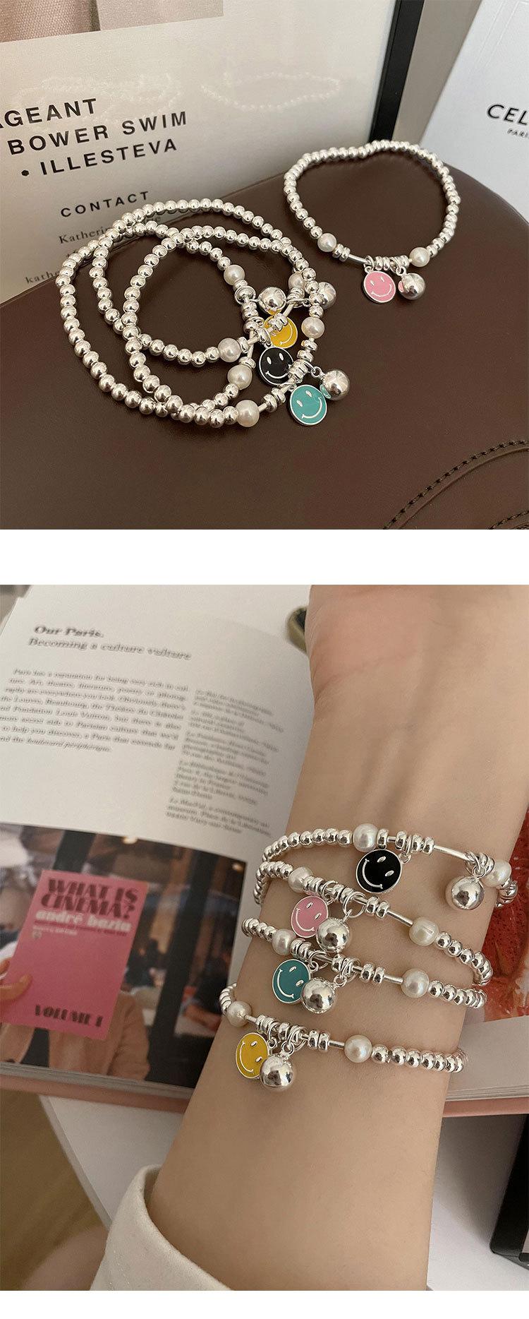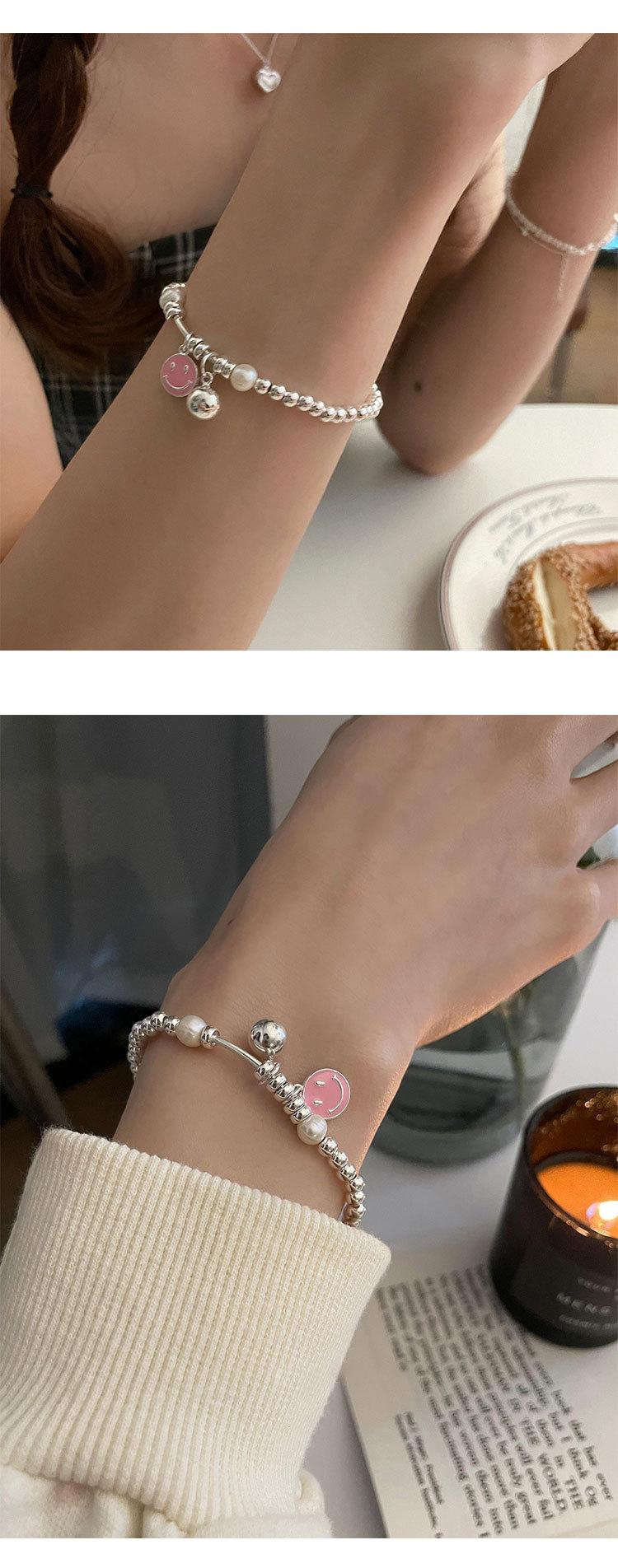 Coreia do Sul Dongdaemun Smiley frisado pulseira de prata Mulheres ins Niche Design Stretch Corda Melhor Amigo Pulseira de Moda