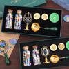 | Seis combinações de bênçãos retrô, cabeça de cobre, cabo de jacarandá, selo de laca de fogo, conjunto de caixa de presente de tira de cera, convite de casamento |