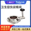 Válvula borboleta de instalação rápida de aço inoxidável 304 para higiene alimentar artesanal Válvula borboleta manual de conexão rápida Mandril de fixação Descarga de poeira