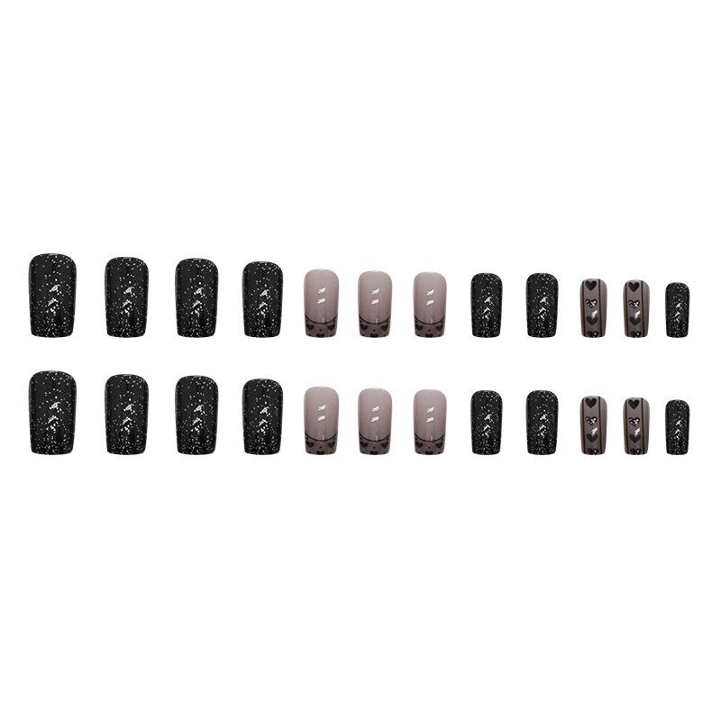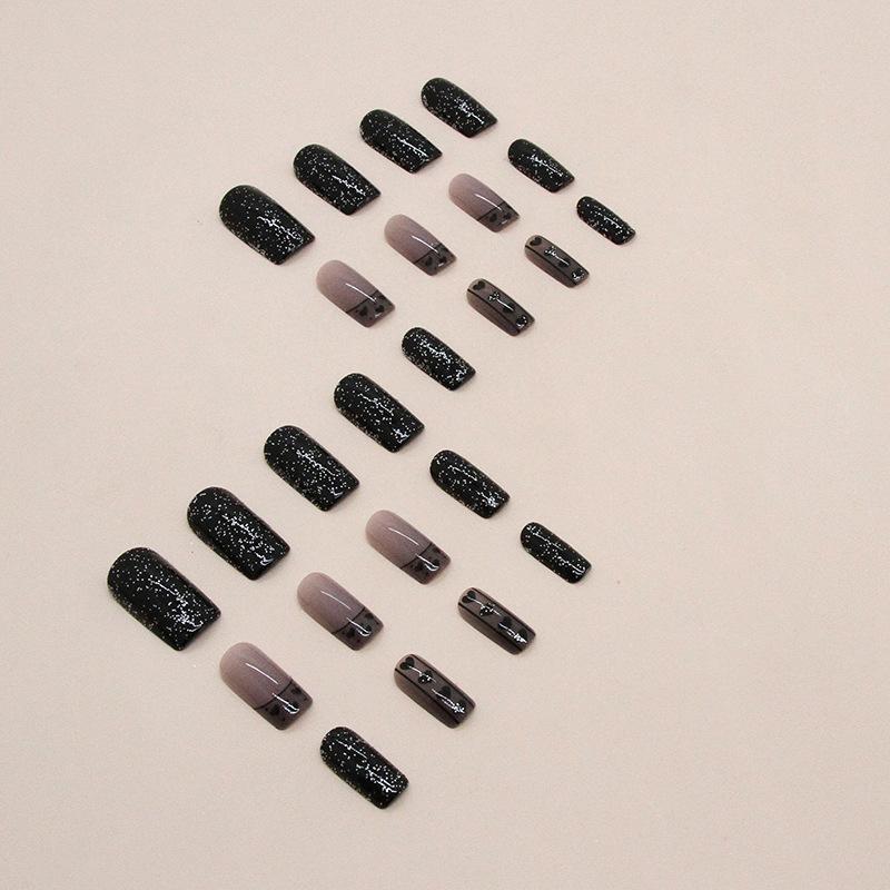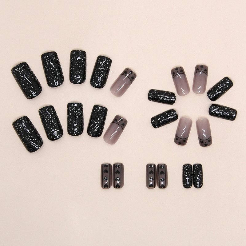 Estrelas da noite coração brilhante glitter francês manicure europeu e americano ins estilo preto doce cool wear unha