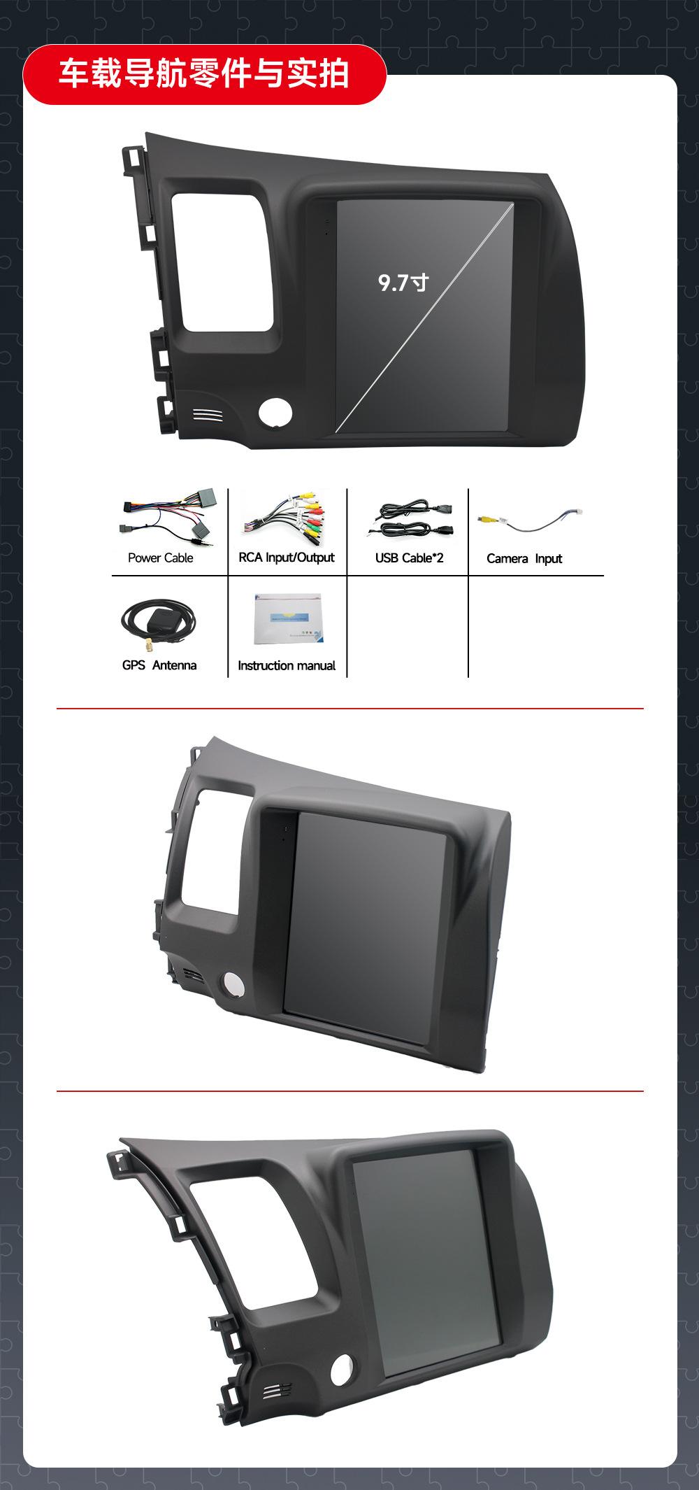 Adequado para Honda Civic antigo tela vertical navegação 9,7 polegadas manual carro GPS tela grande Android tudo-em-um máquina