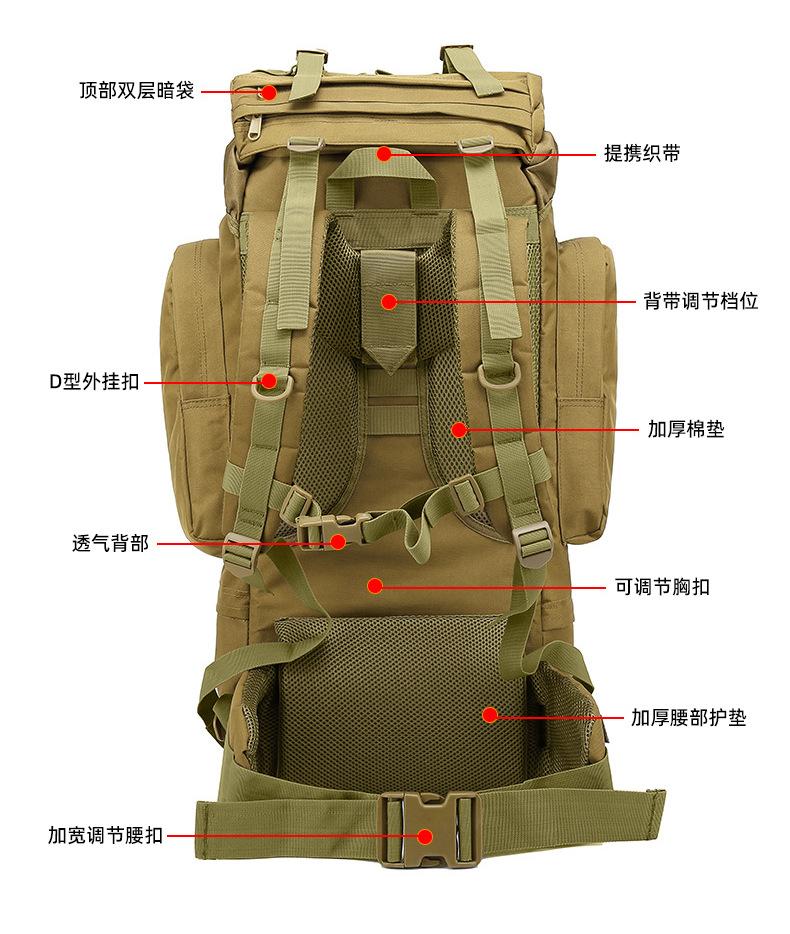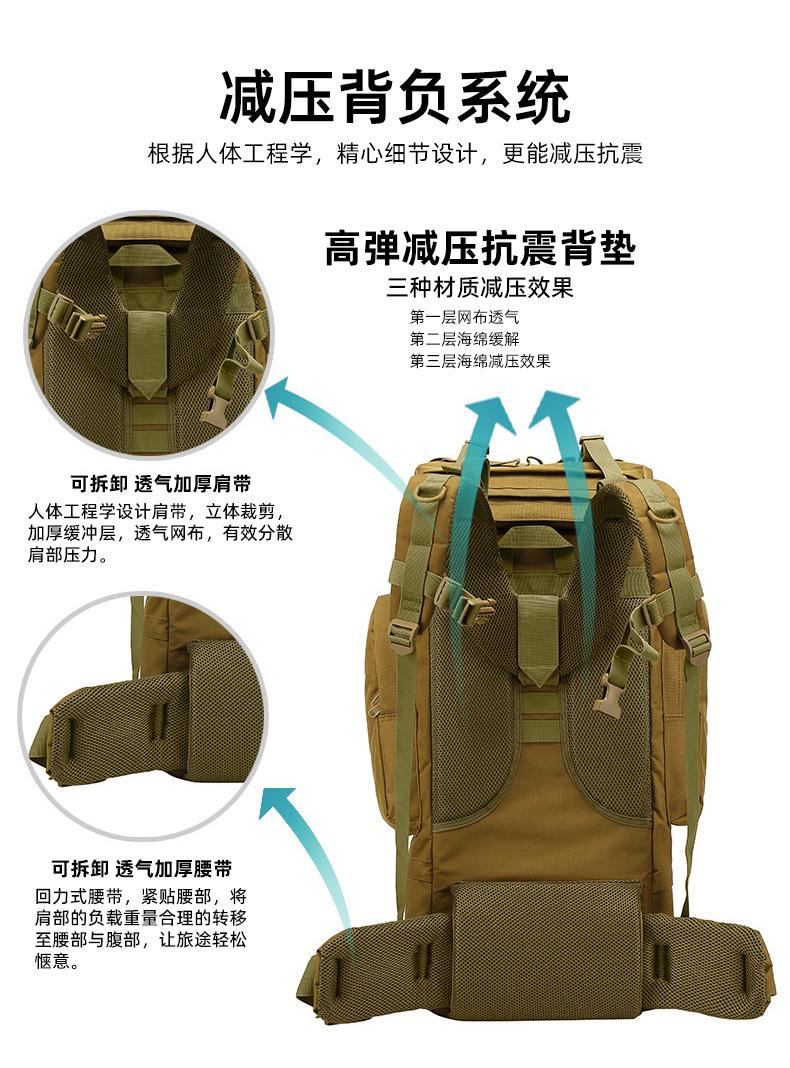 Mochila militar camuflada Cema OEM para atividades ao ar livre, mochila esportiva tática para montanhismo, caminhada, grande capacidade, 65 unidades
