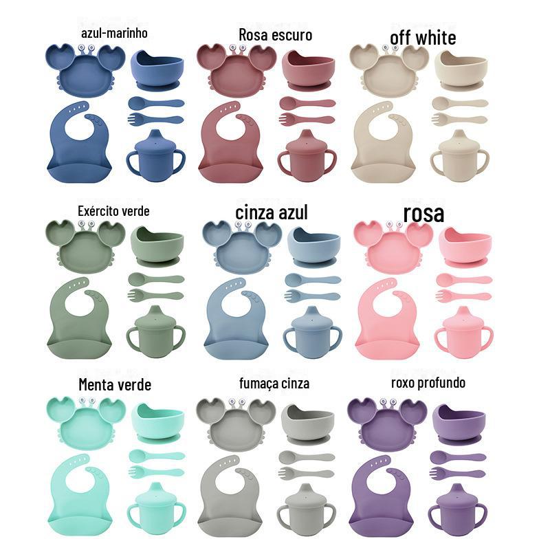 [Nome do produto]: conjunto de talheres infantis [Material]: silicone de qualidade alimentar