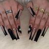 Cool Preto Longo Ballet Nail Art Cool ins Wind Flower Gigante Shining Wear Peça de unha