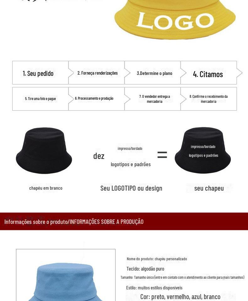 Algodão pescador chapéu personalizado logotipo bordado impressão chapéu personalizado silk screen diy homens e mulheres bacia chapéu casual chapéu de sol