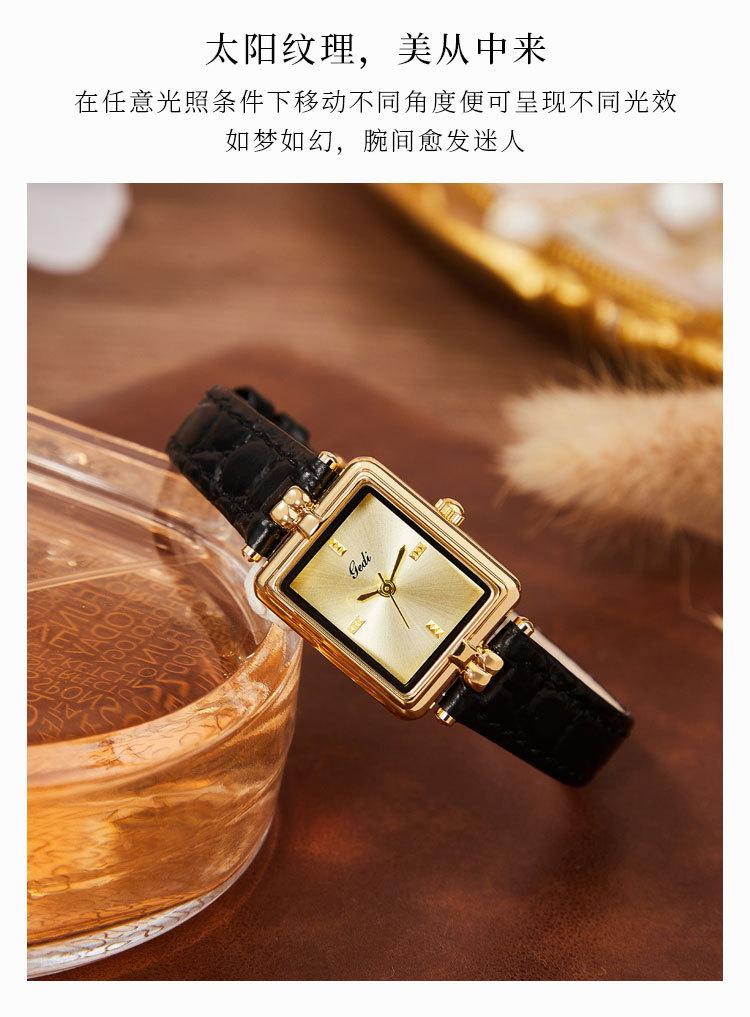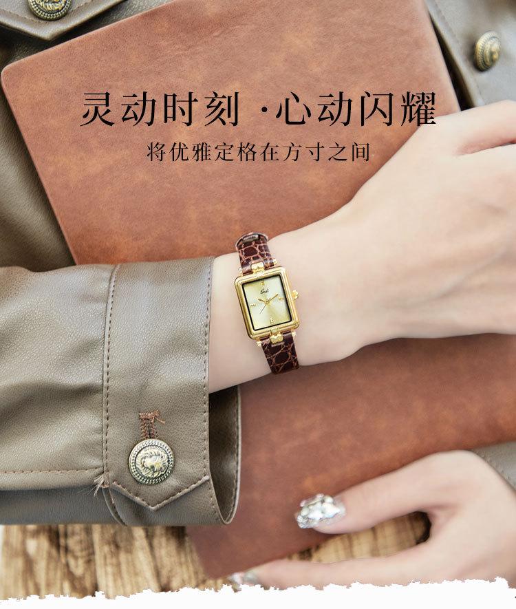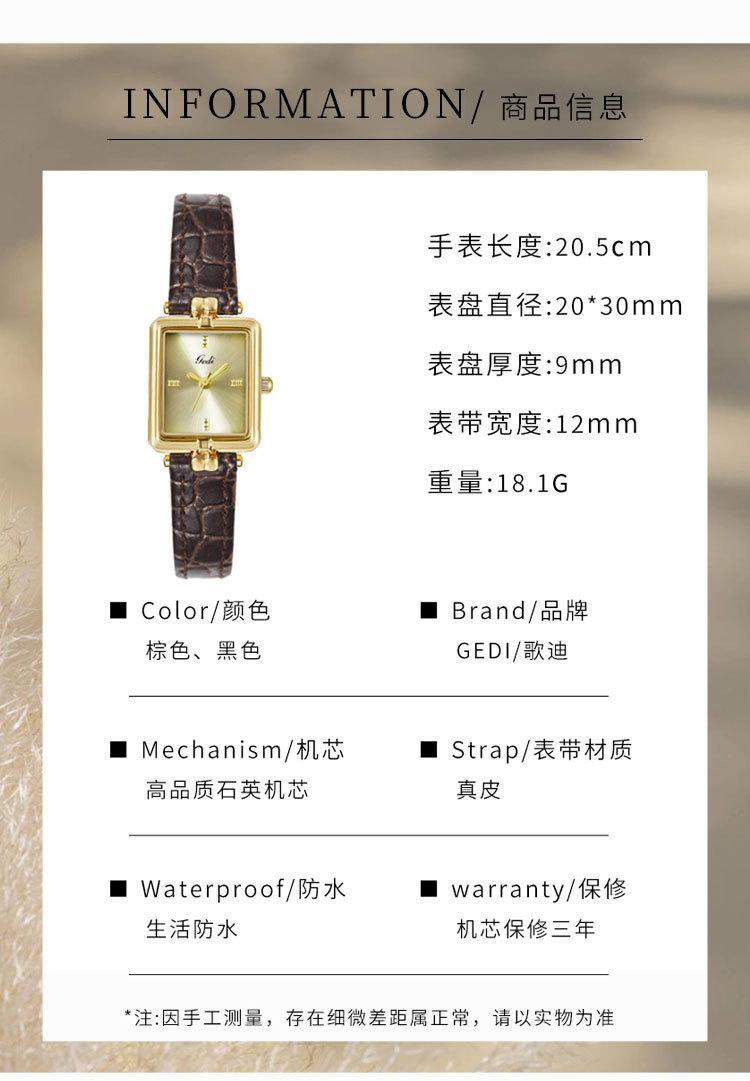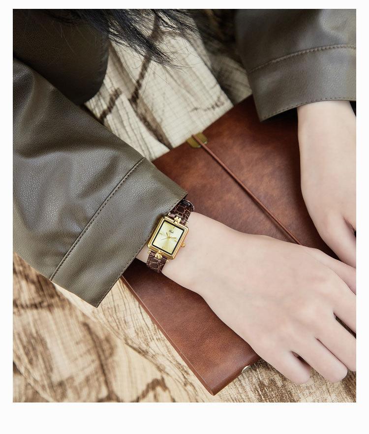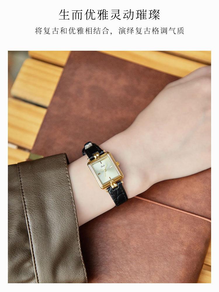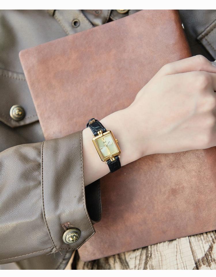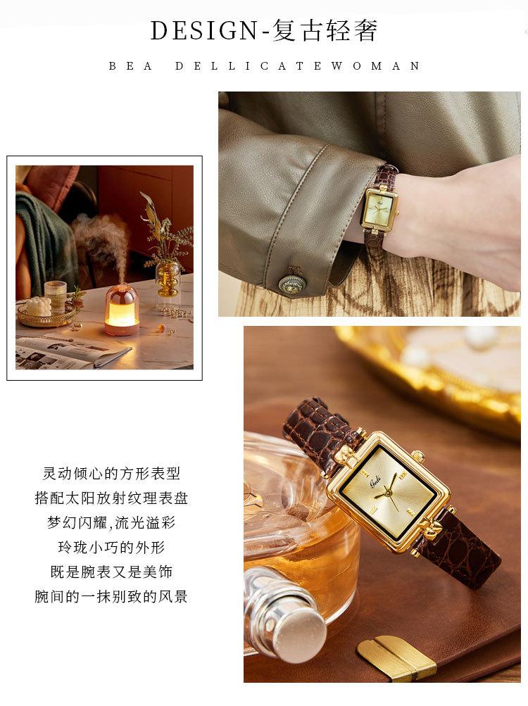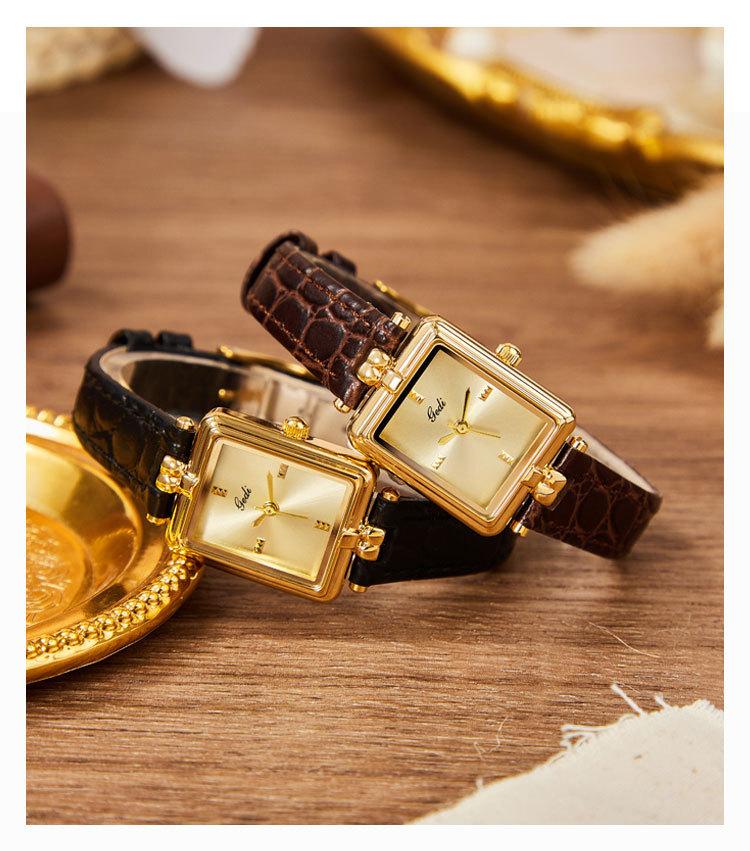 Relógio de pulso feminino Goldie Middle Ancient High-class Nicho Gold Square Plate à prova d'água Relógio de pulso feminino de couro de quartzo