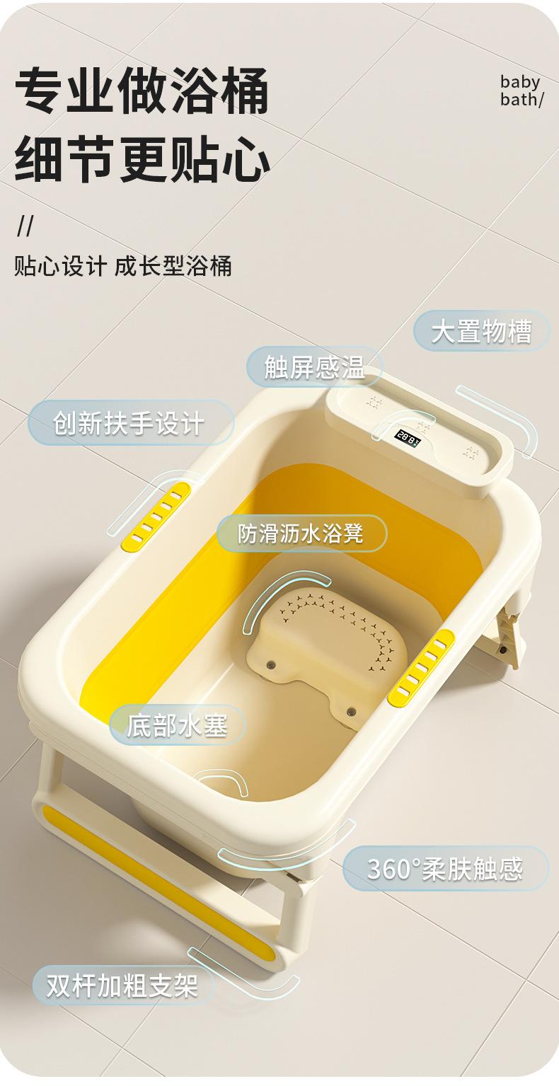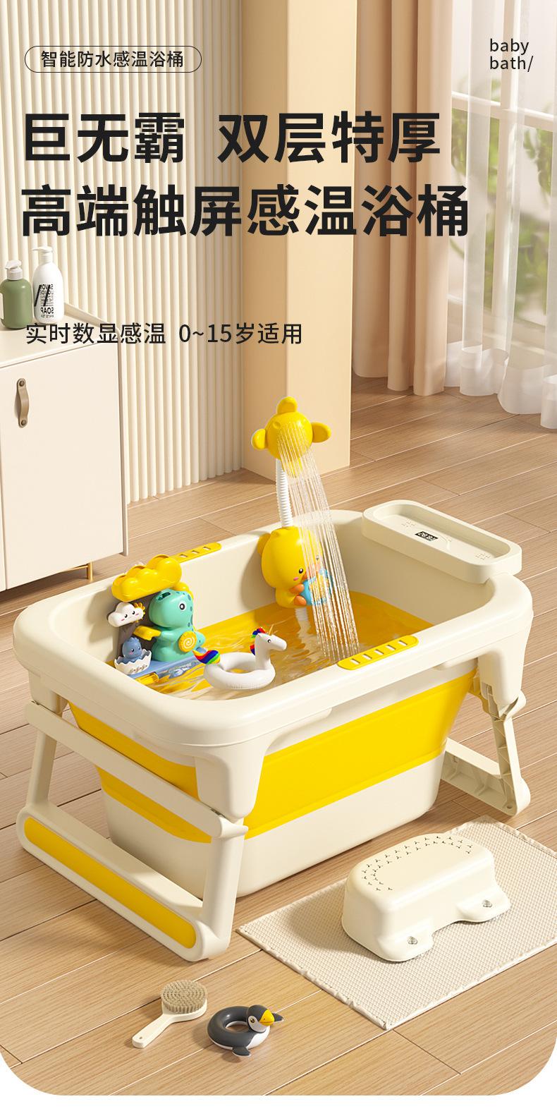 Banheira inteligente com sensor de temperatura dobrável banheira infantil tamanho grande para uso doméstico pode sentar e deitar banheira para bebê recém-nascido