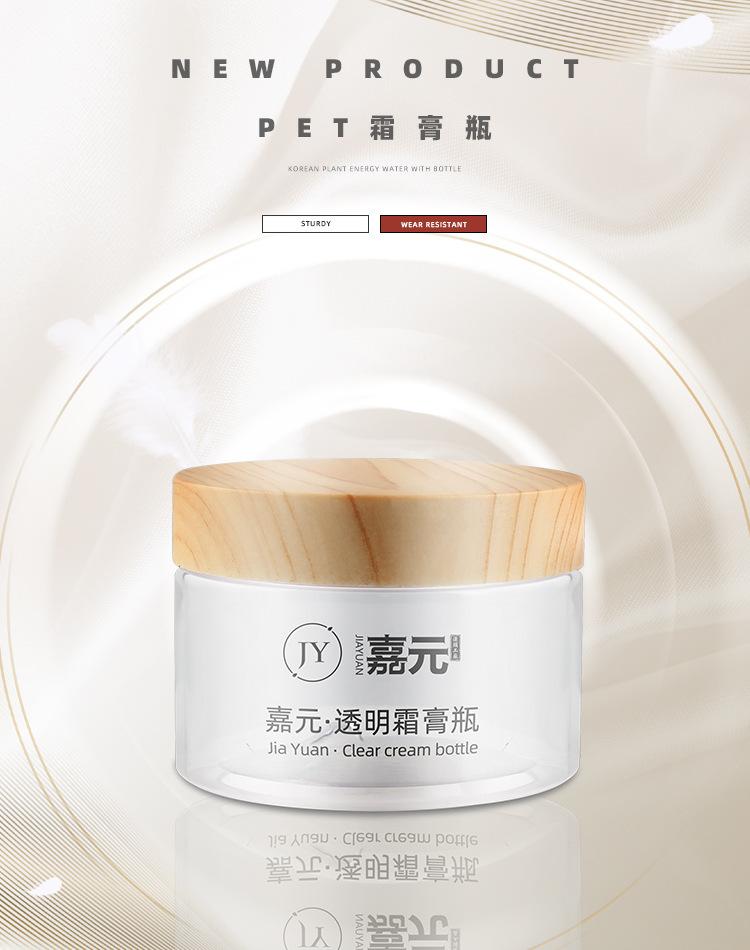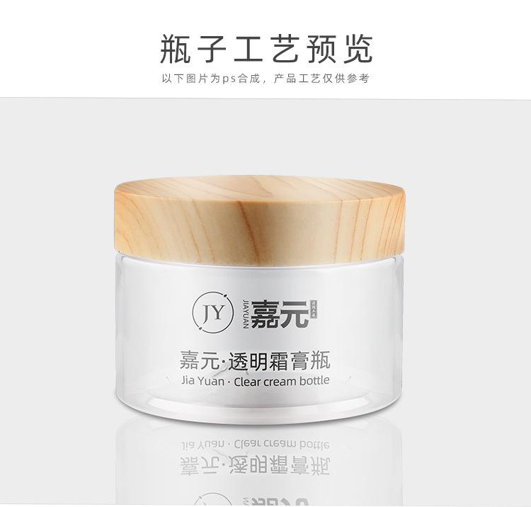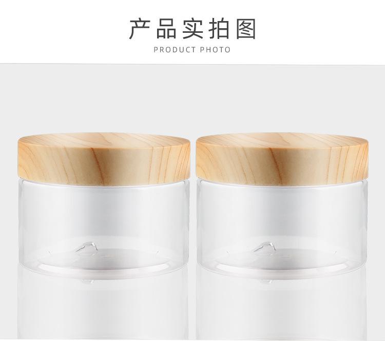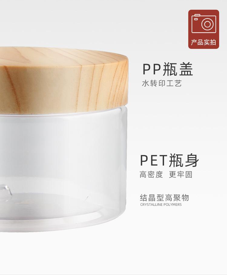 Vendas Diretas de Fábrica Pote de Creme Transparente Personalizado com Serigrafia 100ml Plástico PET Tampa com Grão de Madeira Material de Embalagem Frasco de Boca Larga