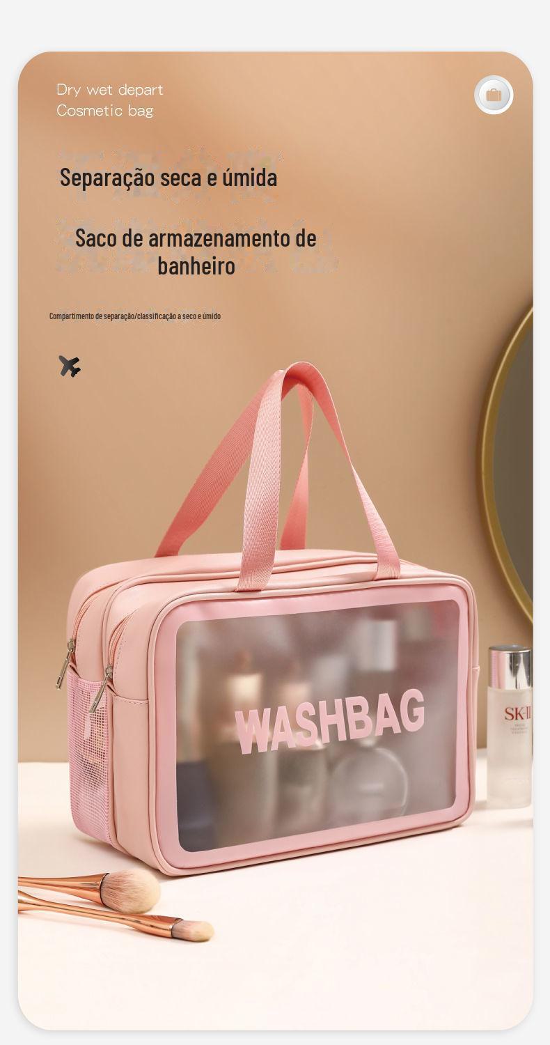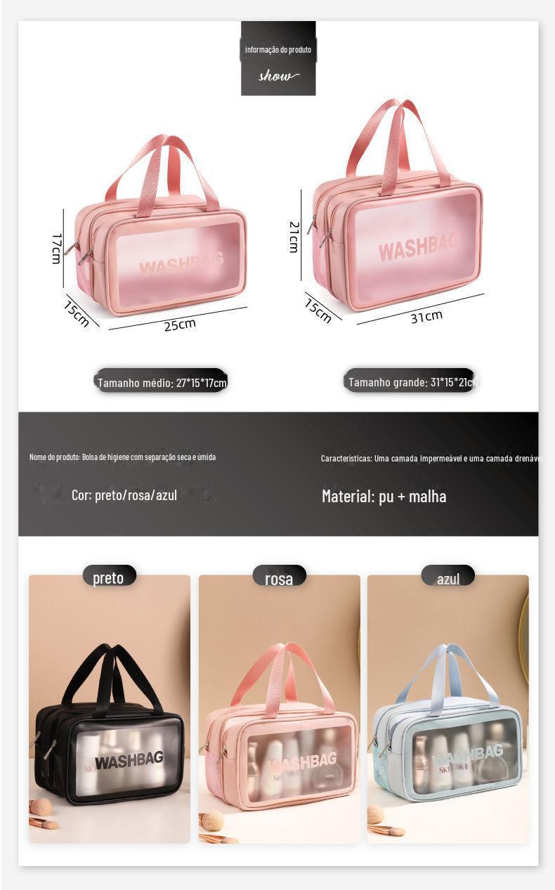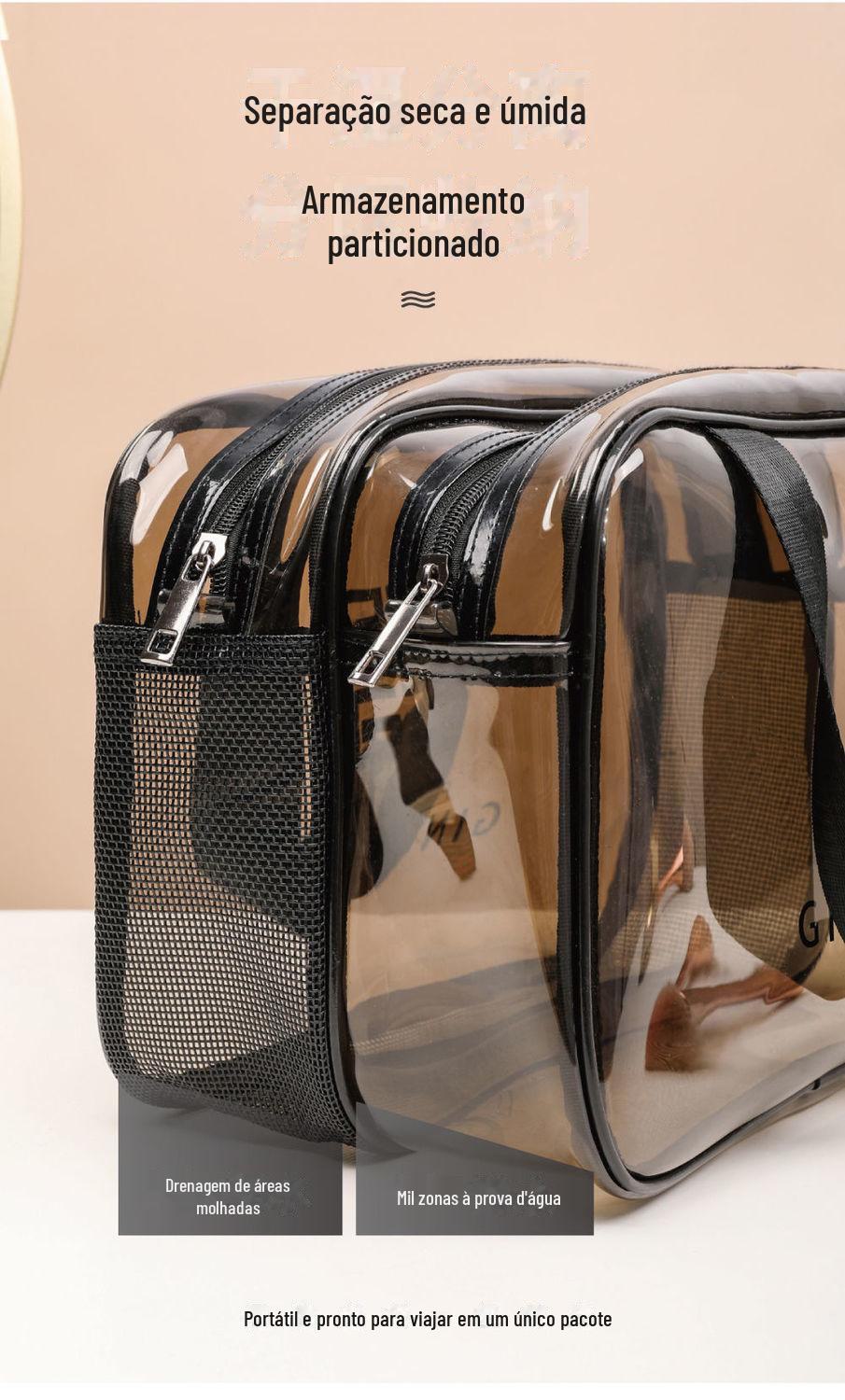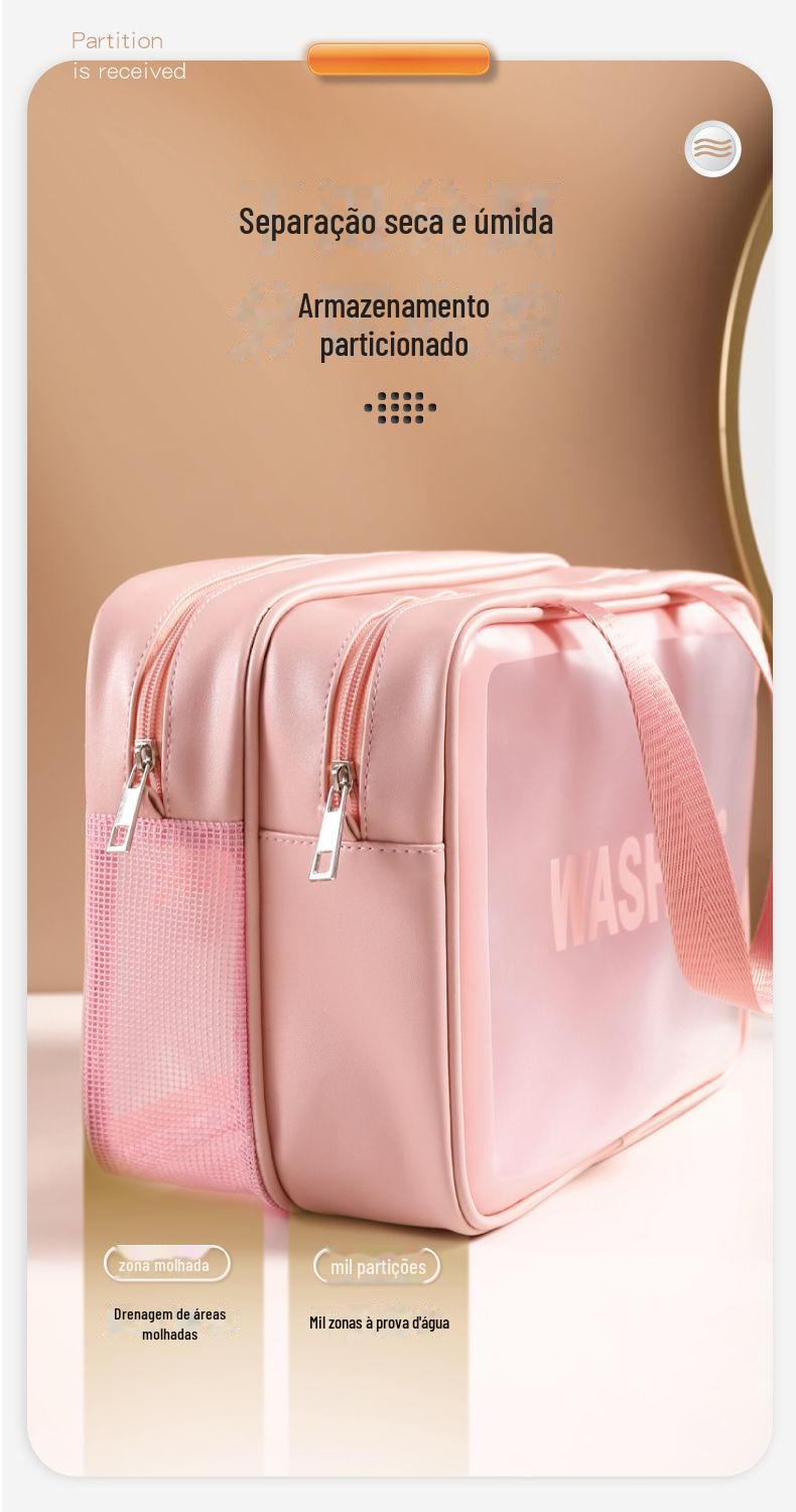Bolsa cosmética de separação seca e úmida de camada dupla PU+PVC: